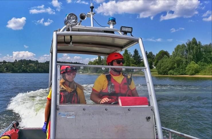 Rosťa vyrazil na přehradu místo nás společně s Veronikou Mičkovou z vodní záchranky.