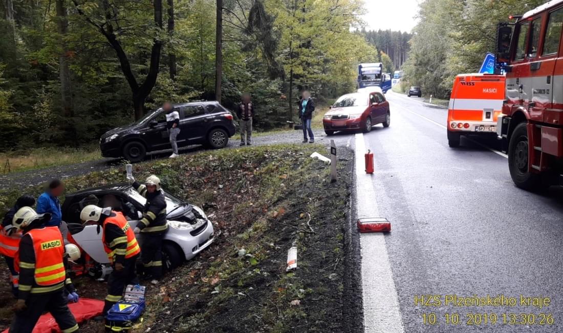 "Z místa nehody transportujeme sedmačtyřicetiletou ženu s lehčím zraněním a asi pětadvacetiletou ženu s lehčím zraněním do Domažlické nemocnice," uvedla tisková mluvčí záchranářů.