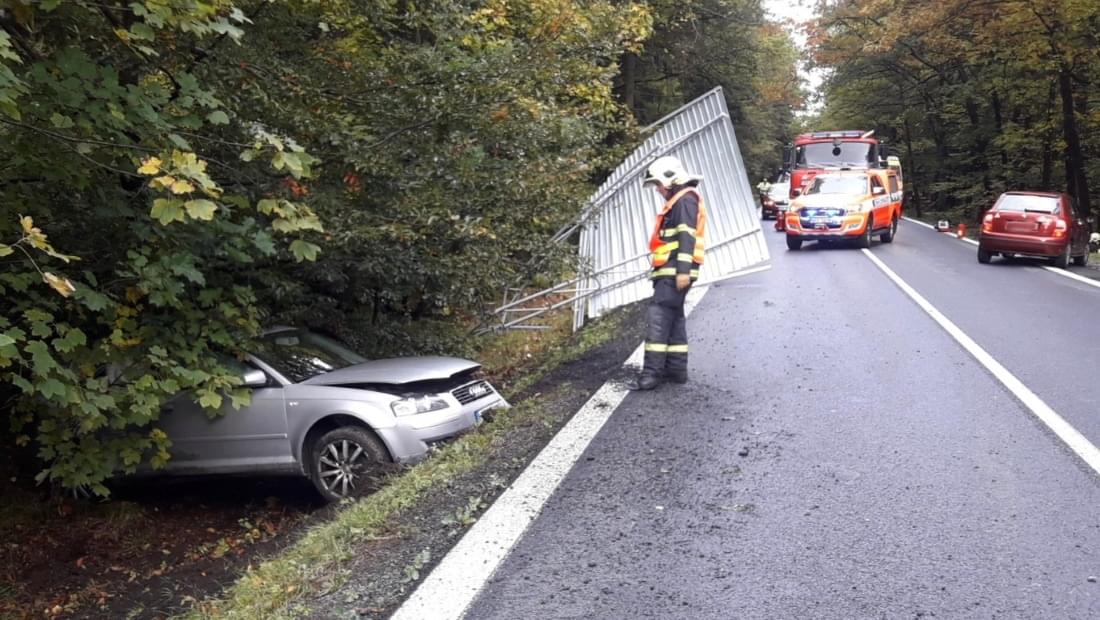 Oba vozy byly nárazem vymrštěny ze silnice a Audy navíc narazilo do dopravního ukazatele.