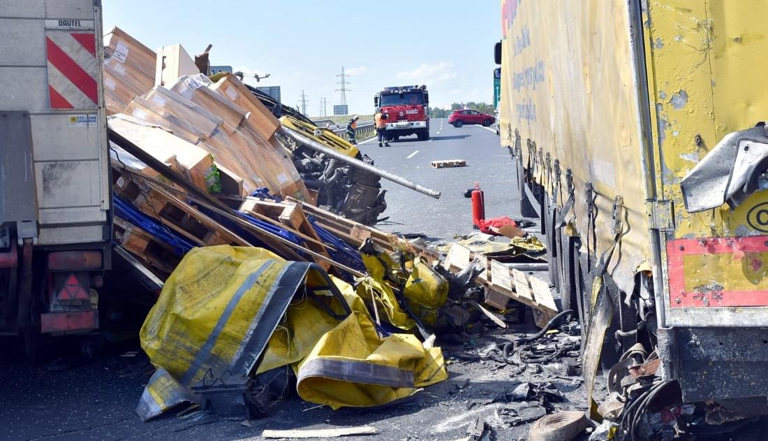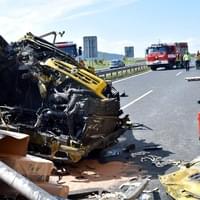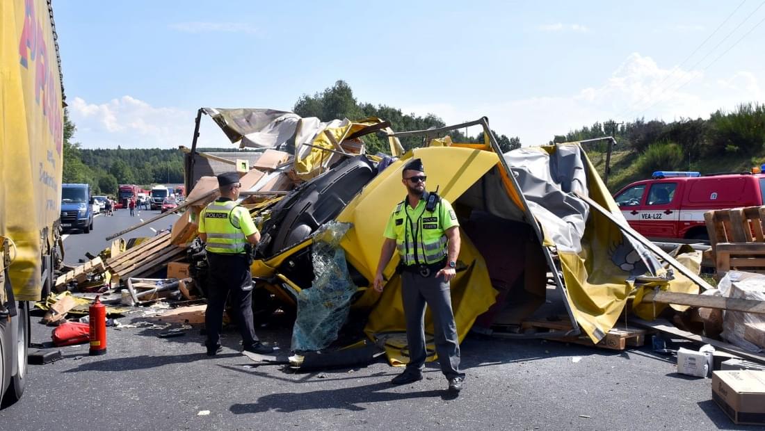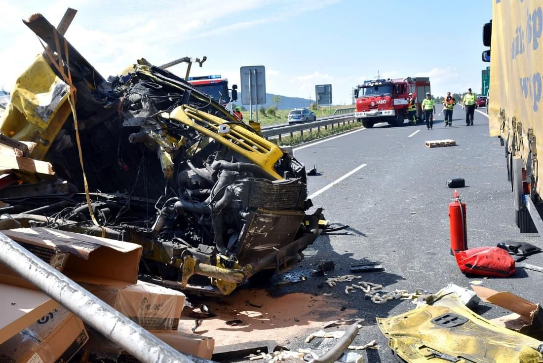 Nákladní auto po nárazu do stojícího kamionu skončilo zcela zdemolované, v kabině jel pouze řidič, který byl v době příjezdů hasičů na místo již mimo vozidlo.