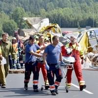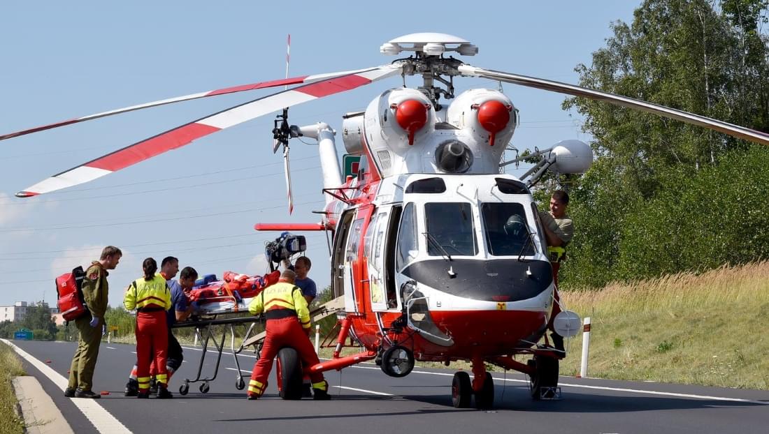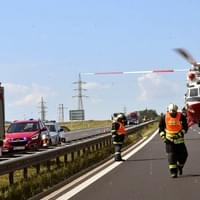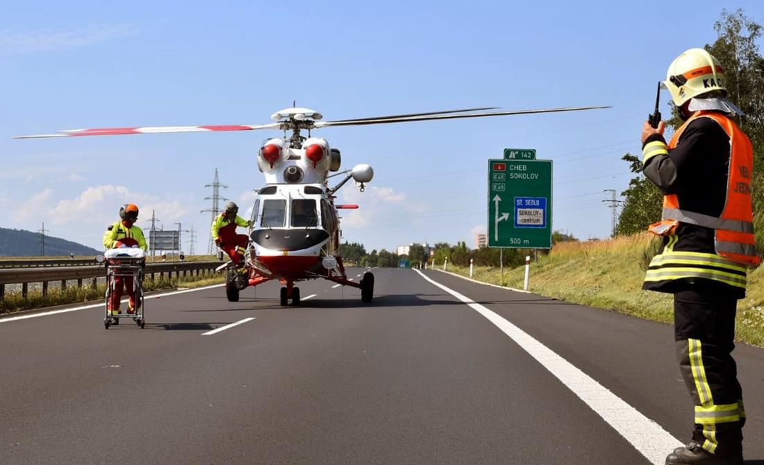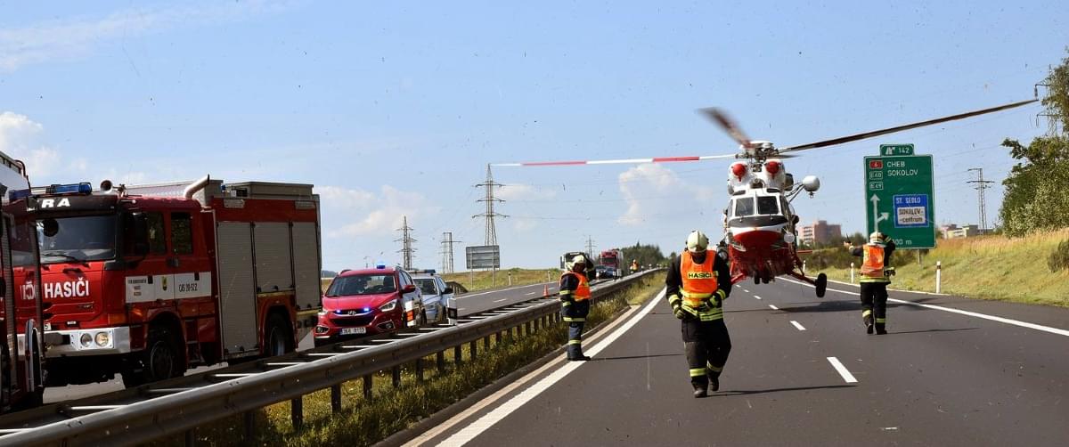 Na žádost posádky záchranné služby zajistili hasiči přímo na dálnici místo pro přistání vrtulníku, který po ošetření transportoval muže do nemocnice.