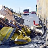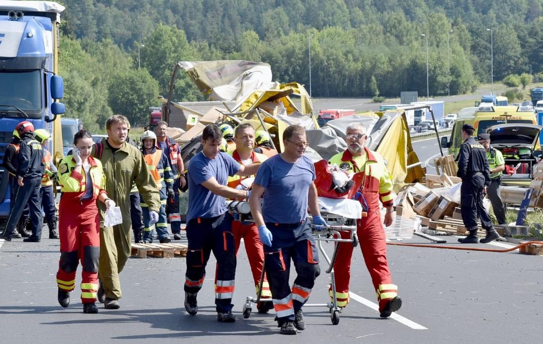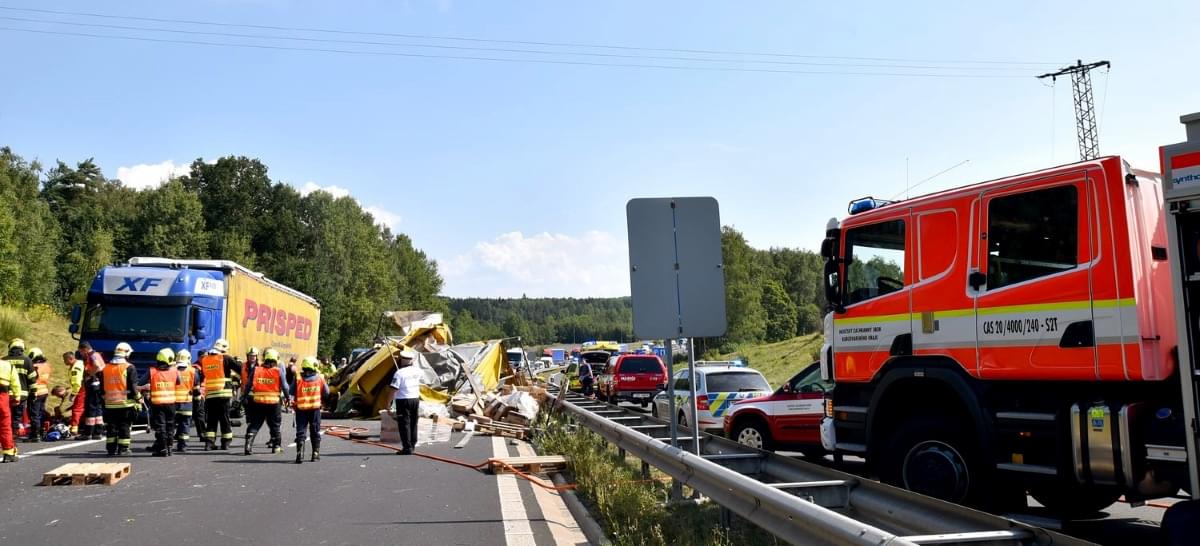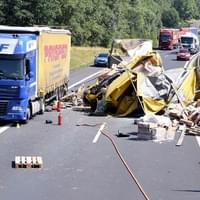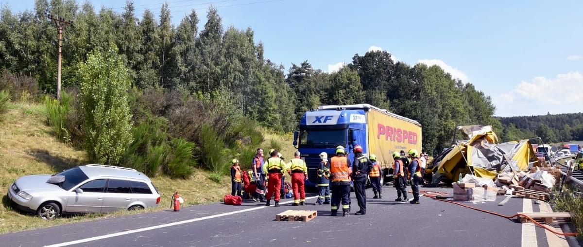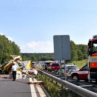 Krátce před druhou hodinou odpoledne byl zprovozněn jeden jízdní pruh, hasiči na místě nehody dále řešili přeložení nákladu z havarovaného nákladního auta a asistenci při naložení na odtahovou službu.