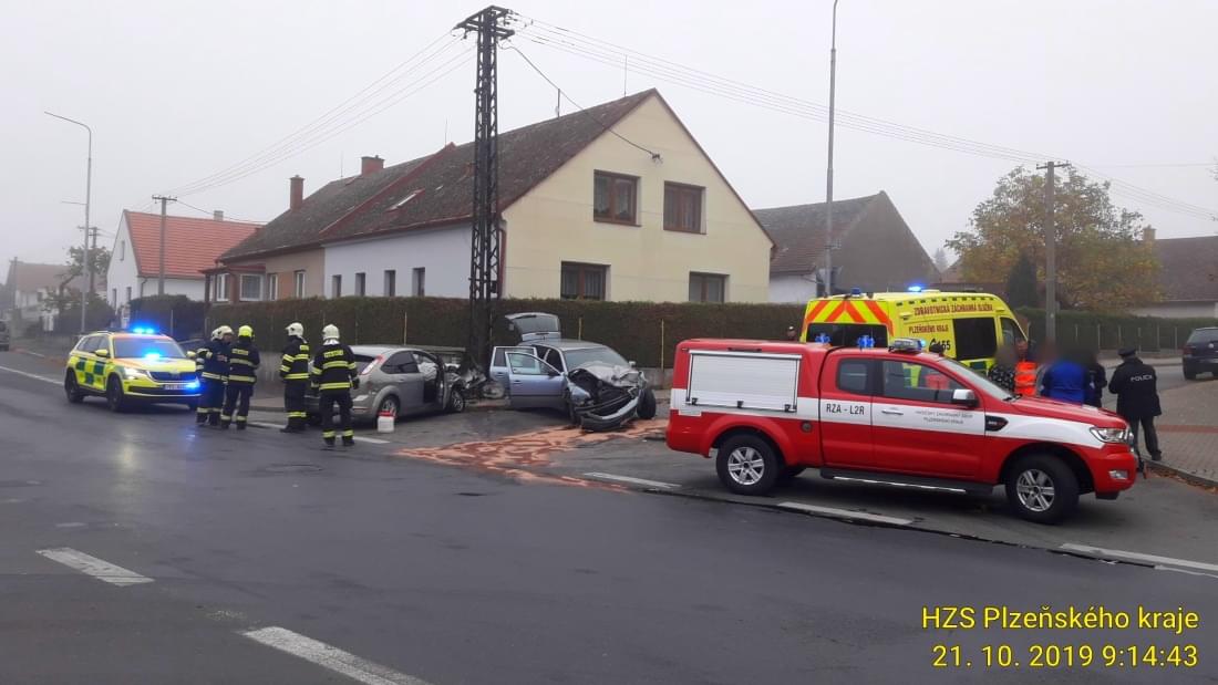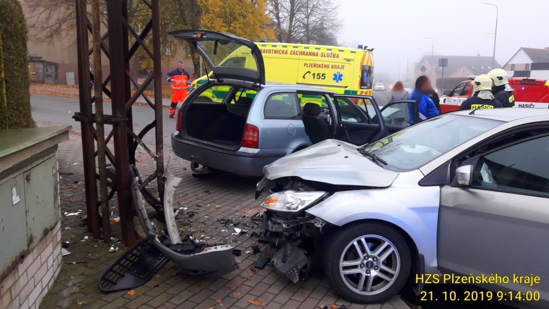 Dnes před devátou hodinou ráno došlo v Janovicích nad Úhlavou na křižovatce ulic Nýrská a Klenovská ke střetu dvou osobních vozidel, z nichž jedno bylo po nárazu odmrštěno do sloupu elektrického vedení.