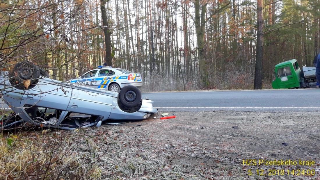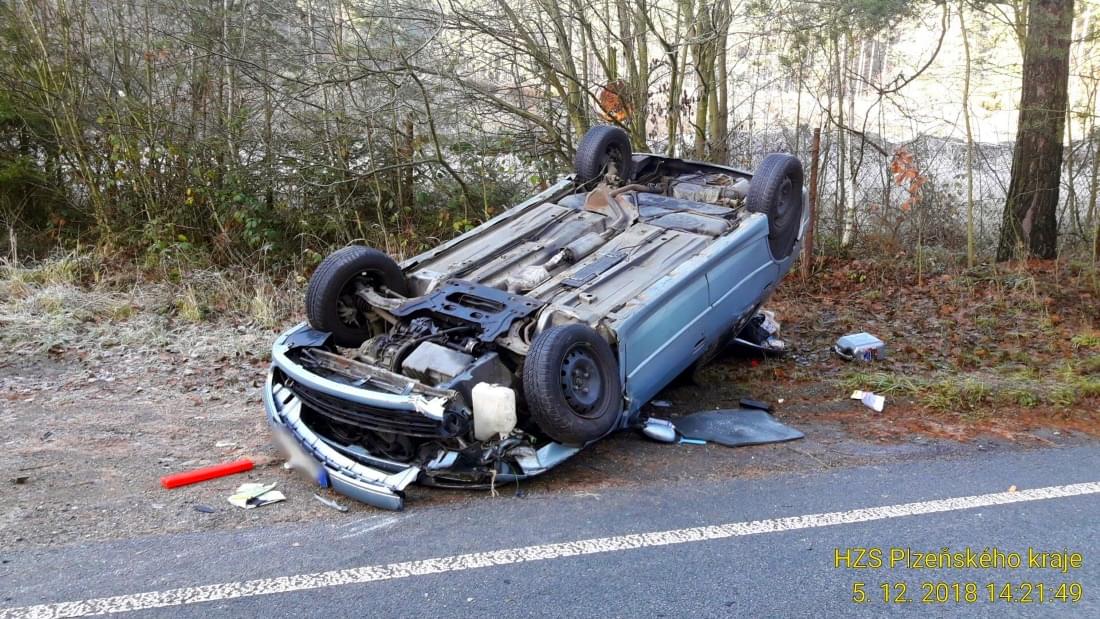 Při dopravní nehodě došlo k lehkému zranění řidiče osobního vozu, kterého do péče záchranářů předali hasiči. Mladý muž byl z místa dopravní nehody odvezen k ošetření do domažlické nemocnice.