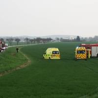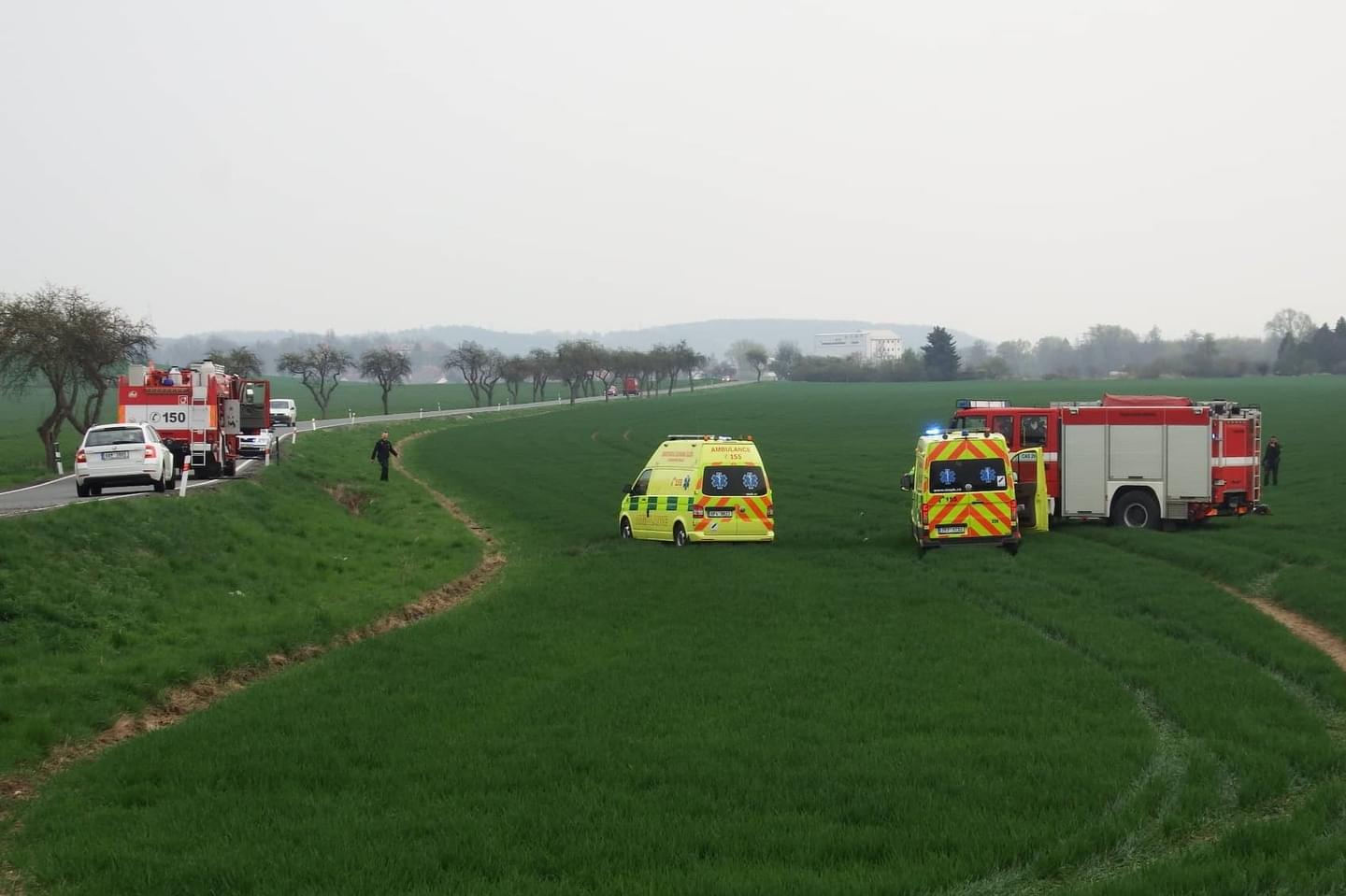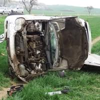 Dnes po půl druhé odpoledne došlo mezi Městem Touškovem a Malesicemi k havárii osobního vozu Mercedes jedoucího směrem na Plzeň, u které musely zasahovat všechny záchranné složky.