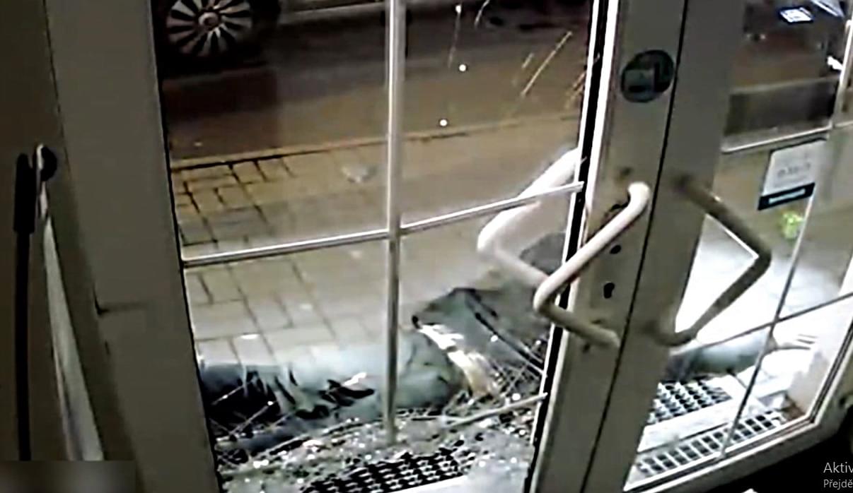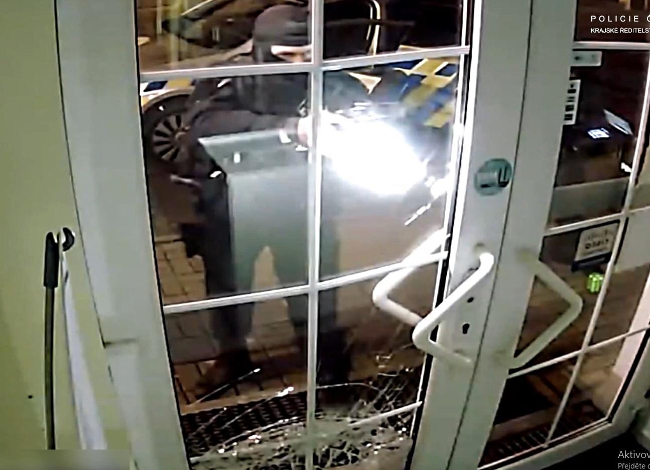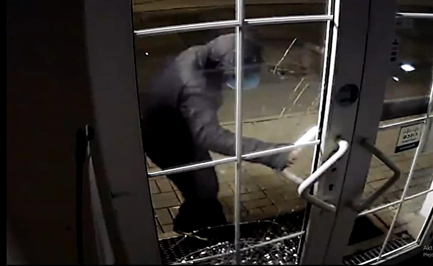 Včera v noci došlo k vloupání do prodejny v Sokolově. Jak sami můžete vidět na videu, muž nejdříve kamenem rozbil skleněnou výplň vstupních dveří a poté vnikl dovnitř.