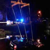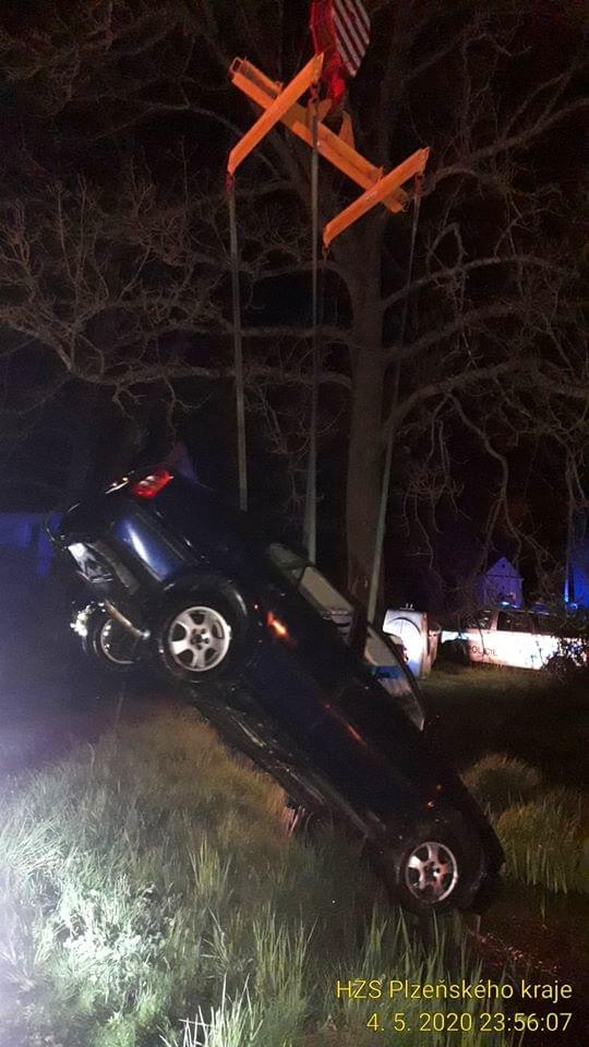 Hasiči na místo k vyproštění vozu museli povolat vyprošťovací jeřáb. K úniku provozních kapalin nedošlo.
