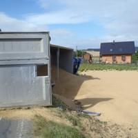 Řidič během nehody utrpěl lehčí zranění a byl transportován ZZS do nemocnice. Následné odstraňování nehody hasiče zaměstnalo na poměrně dlouhou dobu. Nejen, že se vysypal převážený ječmen, ale z jedné proražené nádrže unikla nafta a z druhé hydraulický olej, takže hasiči odstraňovali nejen tuny obilí, ale také museli zachytávat provozní kapaliny do nádob a přečerpat zbylou naftu do barelu. Naštěstí se jim vše podařilo zastavit a do nedalekého vodního toku se uniklá nafta nedostala. Odbagrování kontaminované zeminy zajistí majitel kamionové dopravy.