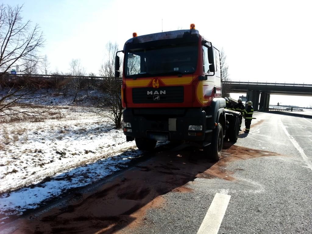 Z vozidla unikala nafta a hydraulický olej na vozovku a z cisterny vytékala močůvka. Hasičům se podařilo únik zastavit pomocí ucpávek. Uniklou močůvku zachytila retenční nádrž, a nedošlo tedy k znečištění životního prostředí.