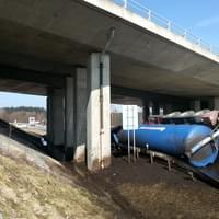 Hasiči PS Tachov a SDH Přimda vyjeli včera před desátou hodinou dopoledne k dopravní nehodě cisterny převážející močůvku, když se utrhl a převrátil na sjezdu z dálnice u obce Mlýnec návěs.