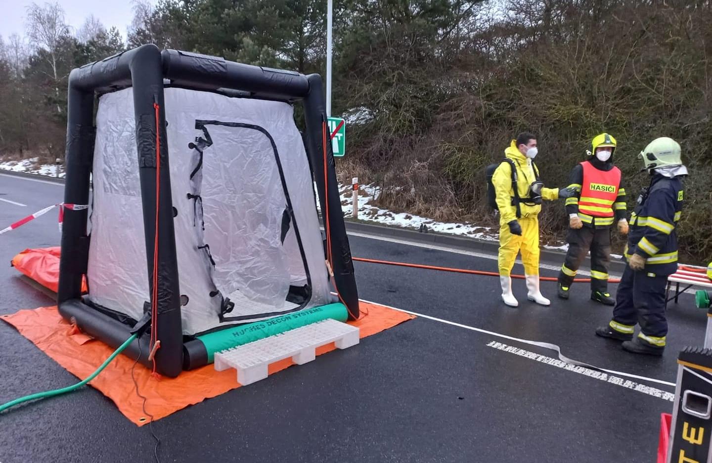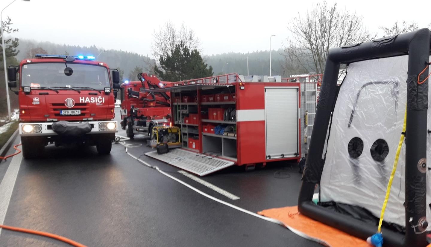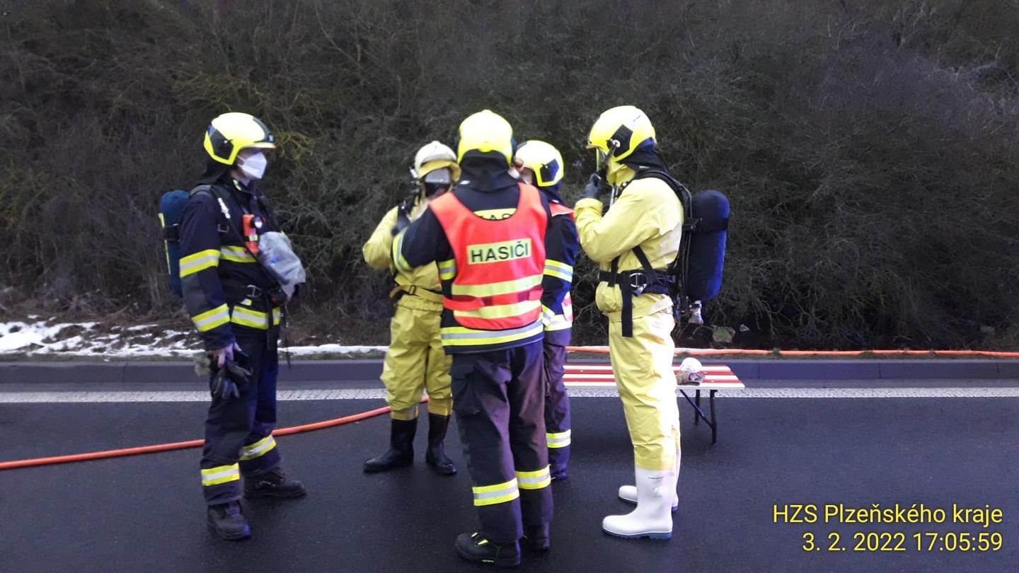 Včera před čtvrtou hodinou odpoledne vyjížděli hasiči na parkoviště Svatá Kateřina u dálnice D5, kde byl nahlášen únik kyseliny dusičné z cisterny. Odpočívadlo na 144. kilometru dálnice D5 ve směru na Německo bylo z tohoto důvodu uzavřeno.