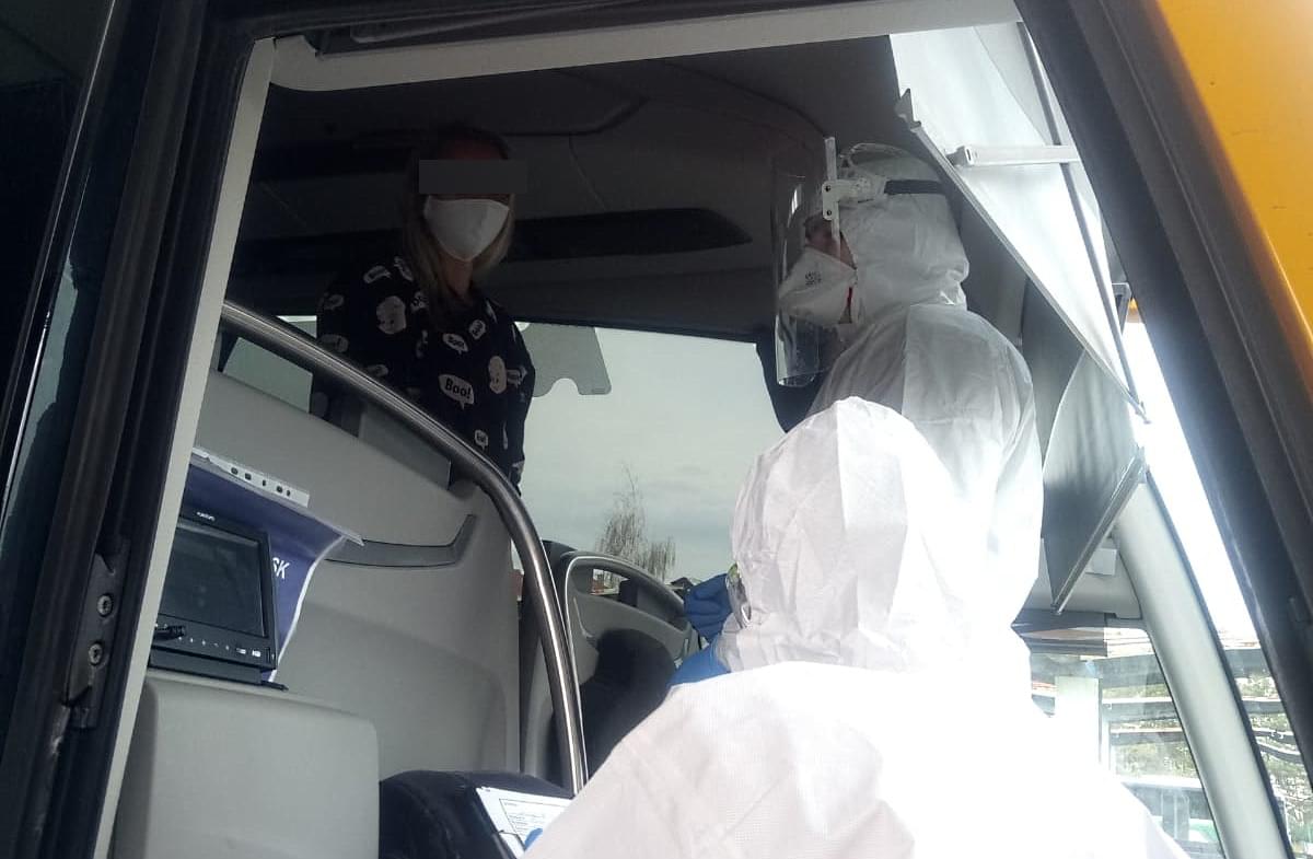 Cestující vystupovali z autobusů přímo do páskami ohrazeného prostoru, kde jim byla změřena teplota a provedeny výtěry k testování na Covid-19. Poté hasiči v ochranných oblecích evakuačním autobusem rozvezli cestující do jejich domovů, kde byli umístěni do karantény.