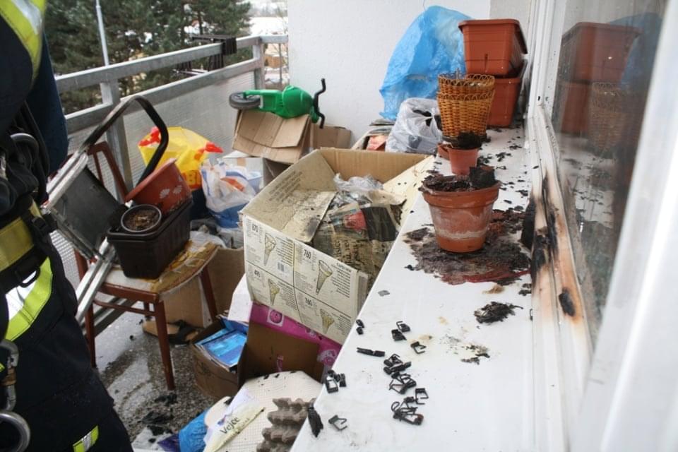 Požár vznikl od nedopalku cigarety. Naštěstí se oheň nestačil rozšířit z balkónu do bytu. Poškodil okenní rám a žárem popraskala okenní tabule. Škody se předběžně odhadují na 30 tisíc korun, uchráněné hodnoty na 200 tisíc.