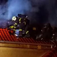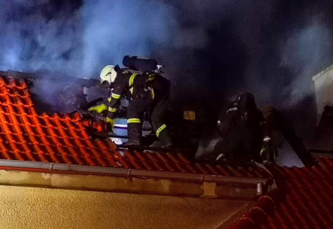 Ze střechy třípatrového rodinného domu šlehaly několikametrové plameny a okolím se valil hustý kouř. Jako první na místo přijeli policisté, kteří zjistili, že pět obyvatel domu se již v pořádku dostalo na zahradu. Následně policisté zakouřené prostory budovy prohledali, aby vyloučili přítomnost dalších osob, nalezli ale pouze vyděšeného pejska, schovávajícího se v jedné z místností a v pořádku ho vyvedli ven.