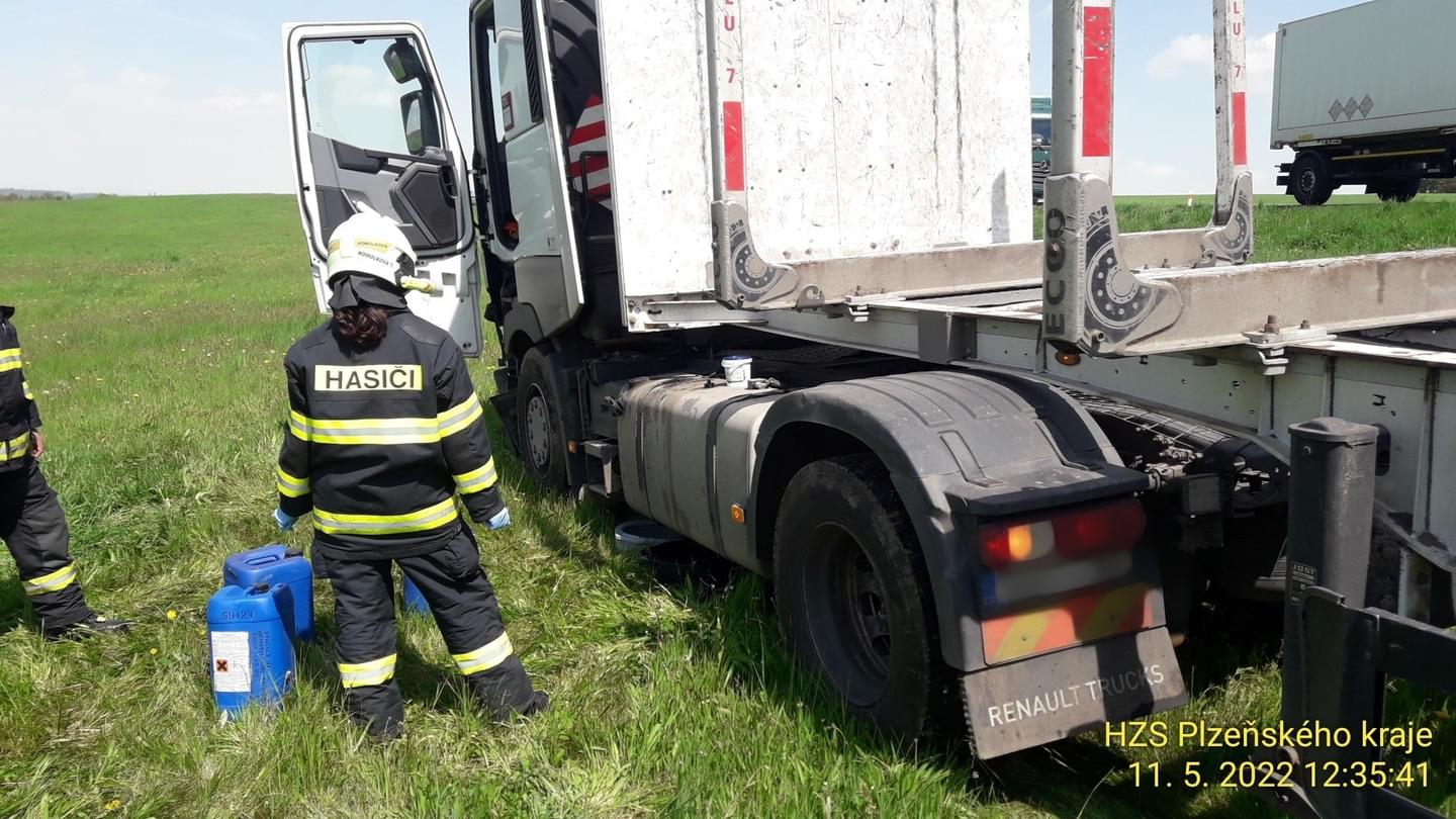 "Odhadem uniklo asi sedm set litrů nafty, část jsme zasypali sorbentem, část zachytili do úkapových nádob a sto sedmdesát litrů se podařilo z nádrží přečerpat do barelů," uvedl nám tiskový mluvčí hasičů s tím, že byl vyrozuměn i odbor životního prostředí.