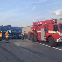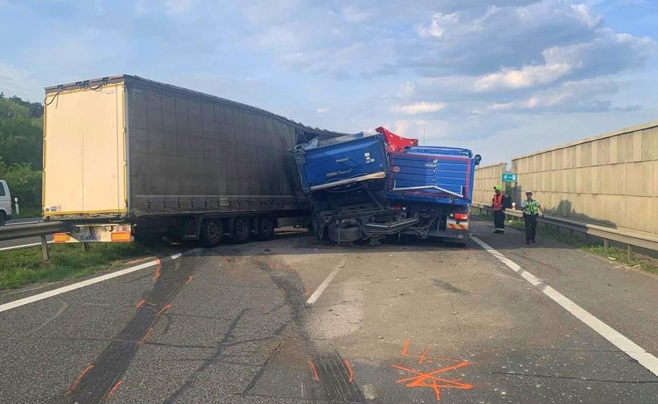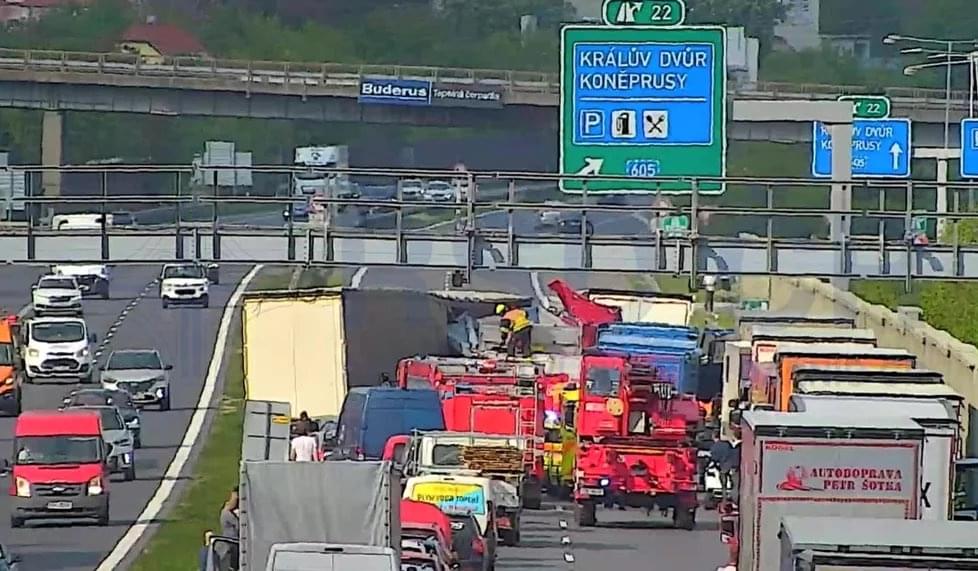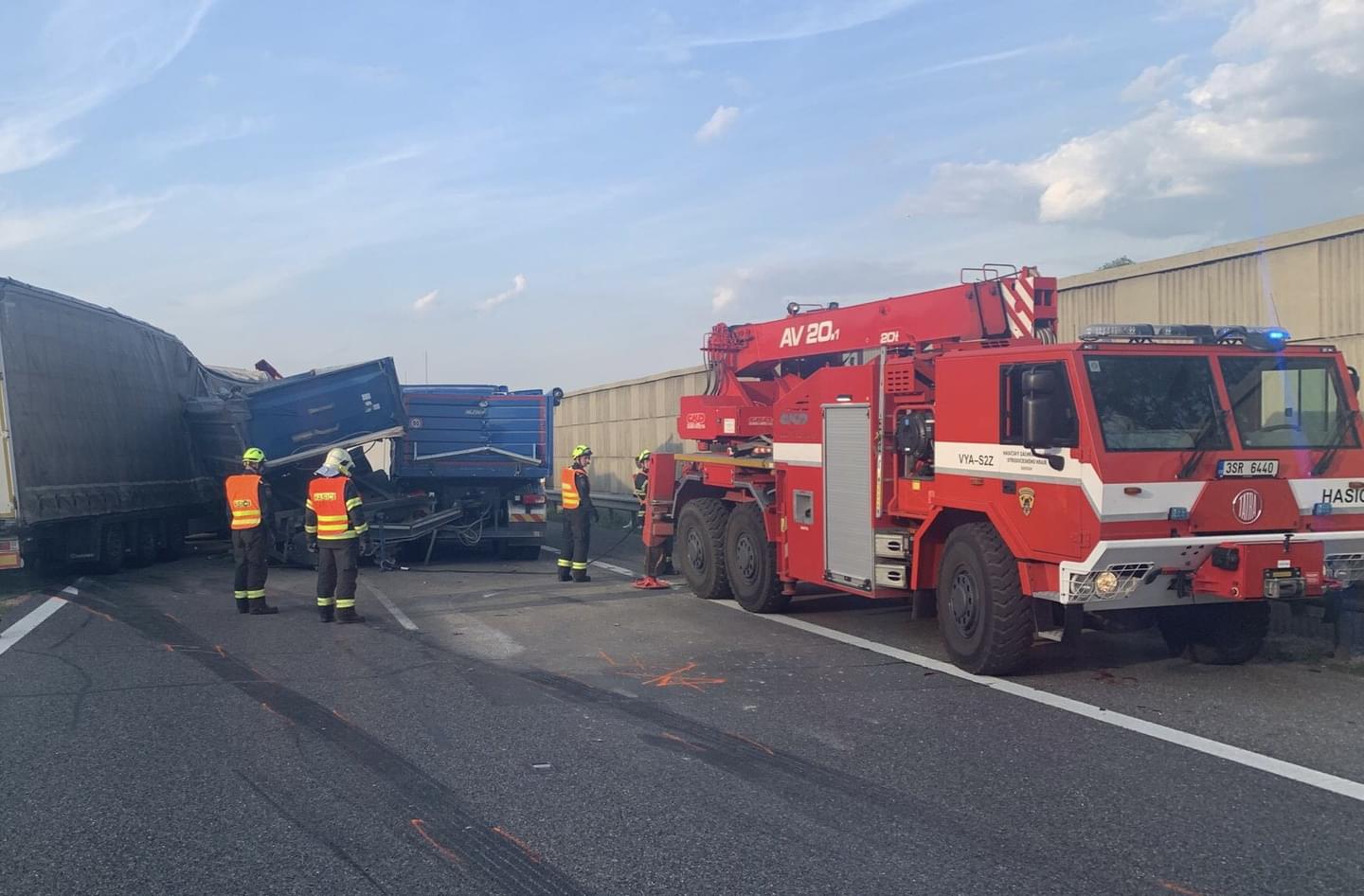 O jiné nehodě kamionů, tentokrát na dálnici D5, jsme informovali i včera večer: