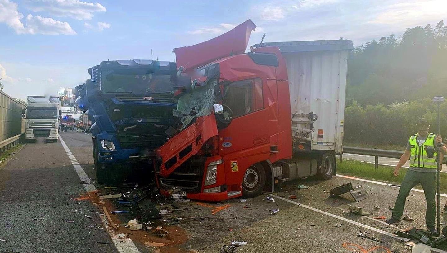 Střet tří kamionů uzavřel dálnici D5 ve směru z Plzně na Prahu