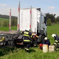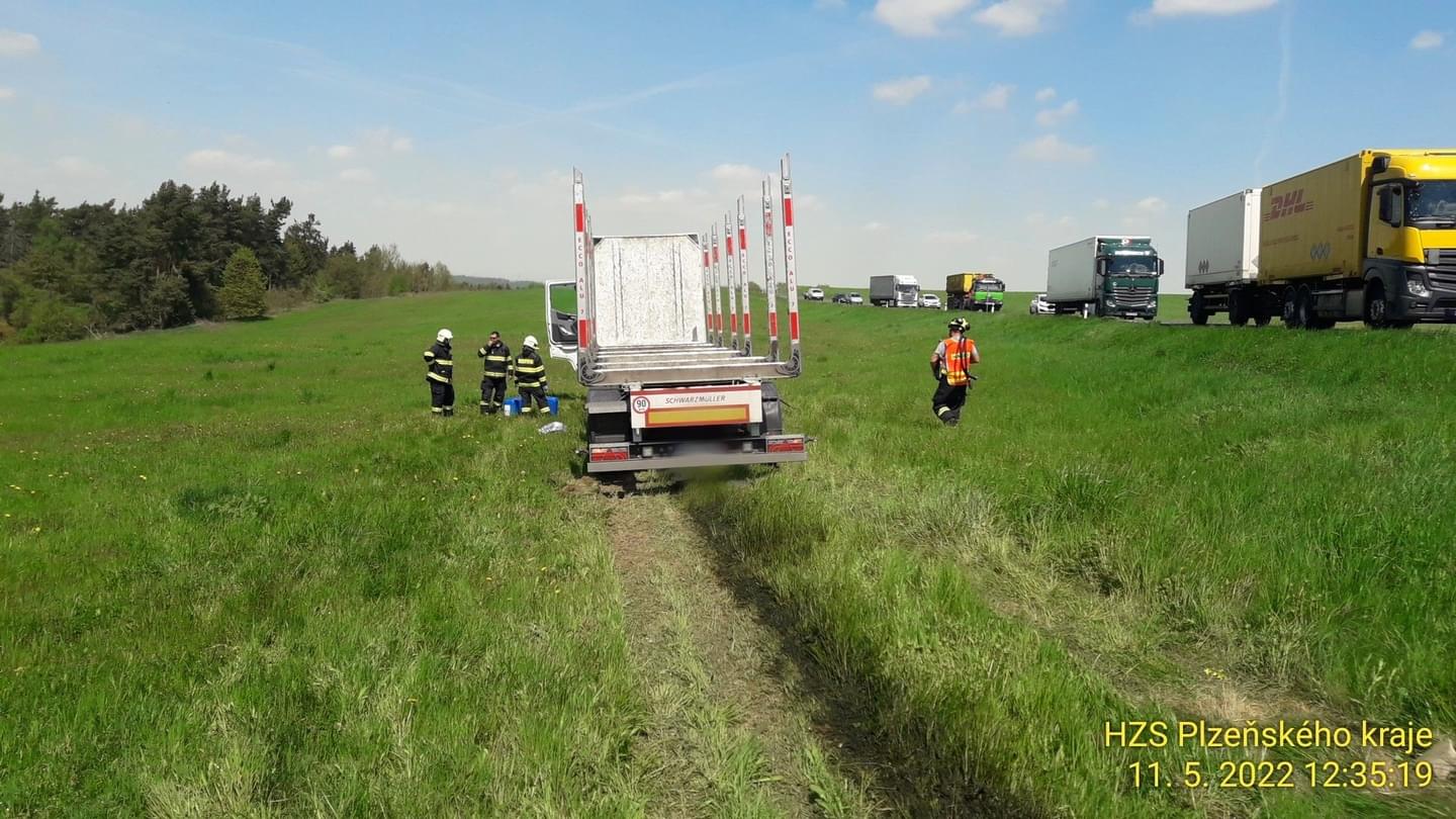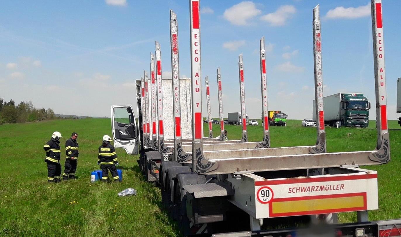 Nehoda se naštěstí obešla bez zranění osob, z kamionu mimo silnici ale začalo unikat velké množství nafty, takže na místo krom policistů museli vyjet i hasiči.