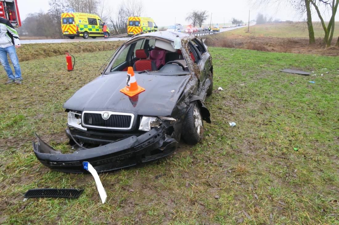 "Šestapadesátiletý řidič osobního automobilu Ford Focus jedoucí ve směru od Dolního Metelska na Horní Metelsko nerespektoval svislou dopravní značku Dej přednost v jízdě! a vjel na hlavní pozemní komunikaci, kde nedal přednost v jízdě osobnímu automobilu Škoda Octavia dvaatřicetiletého řidiče, který přijížděl po hlavní pozemní komunikaci od obce Mířkov," popsala tisková mluvčí policie s tím, že po střetu vozidlo Škoda Octavia po nárazu vyjelo vpravo mimo silnici, kde narazilo do dopravní značky a několikrát se přetočilo přes střechu.