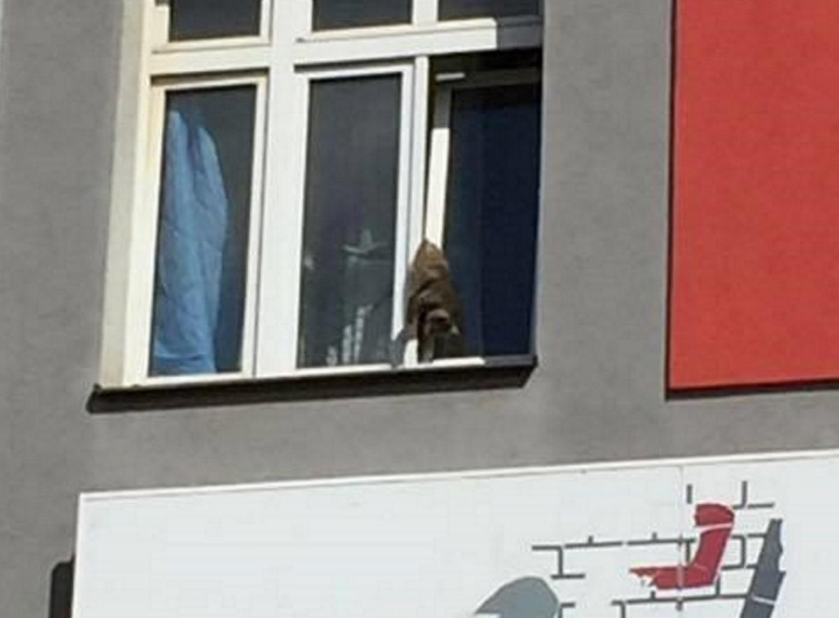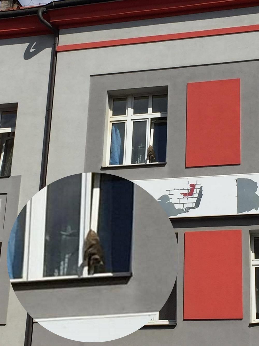 Dnes kolem jedné hodiny dostala nepříliš šikovná kočka v Guldenerově ulici nápad vyjít si na římsu okna na sluníčko a zvolila k tomu otevřenou ventilačku okna. Bohužel pro ni se ale zasekla a zůstala celým tělem bezmocně viset z okna ven.