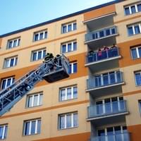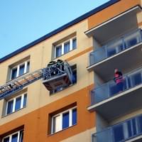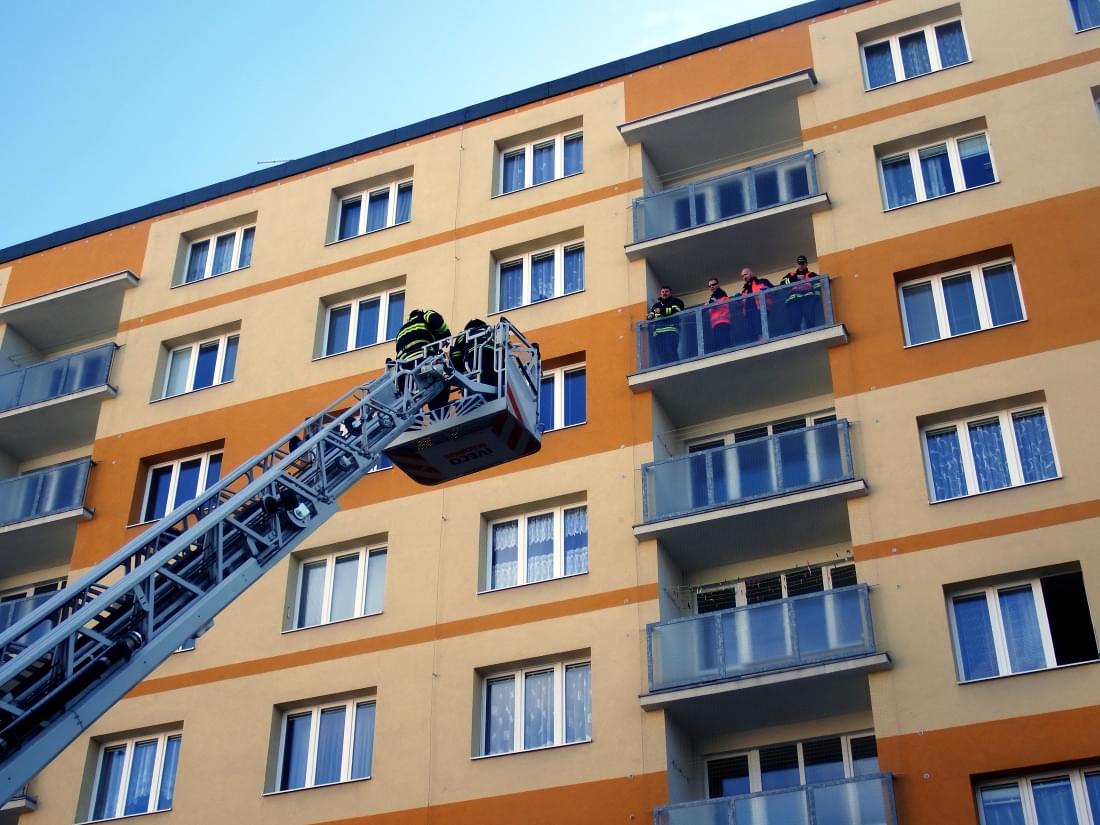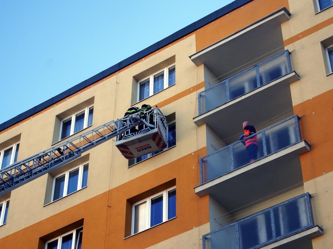 Hasiči zvolili tu nejšetrnější cestu ke zraněné ženě a do bytu se dostali za pomoci výškové techniky. Záchranáři po nezbytném ošetření na místě ženu transportovali do nemocnice.