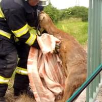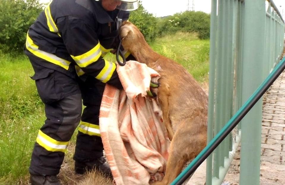 Zachránit ji vyjeli hasiči ze Stříbra. Záchrana byla poměrně snadná, hasiči roztáhli tyče pomocí hydraulického rozpínacího nástroje a nezraněné zvíře vyprostili.