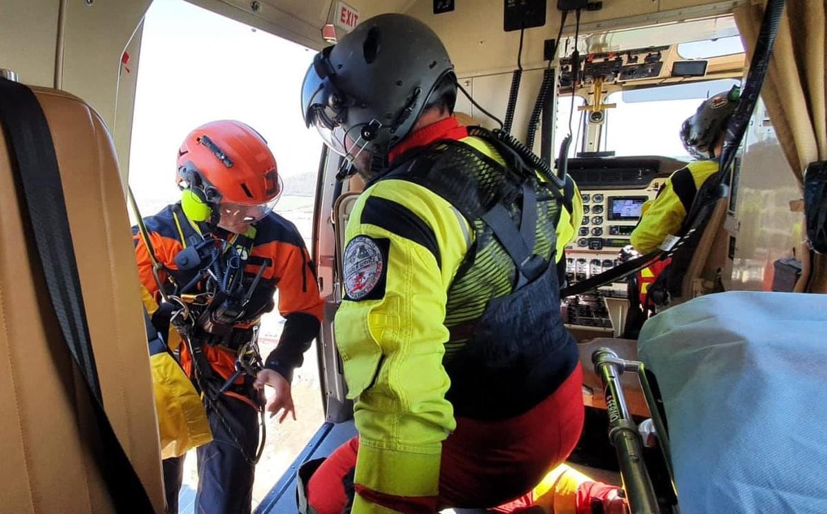 "Vrtulník Letecké záchranné služby nabral v Přešticích našeho leteckého záchranáře, který muže na plošině zajistil a poté byli oba v podvěsu vrtulníku vytaženi do kabiny stroje," doplnil mluvčí hasičů.