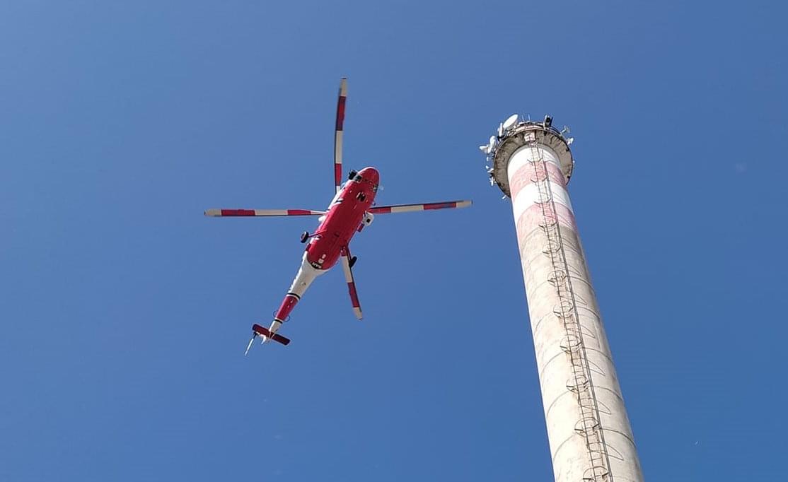 Protože plošina se nachází ve výšce přibližně 50 metrů a muž z ní nebyl schopen slézt kvůli bolestem břicha, závrati i poruše rovnováhy, byl na místo povolán vrtulník Letecké záchranné služby s lezcem hasičů, který k muži na laně sestoupil.