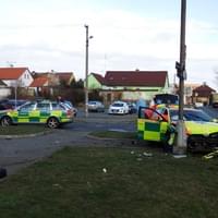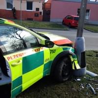 Následně došlo ke srážce obou vozů, kdy záchranářská Škoda jedoucí od Plzně narazila do lampy a Focus ujel ještě asi 10 metrů a přerazil strom.