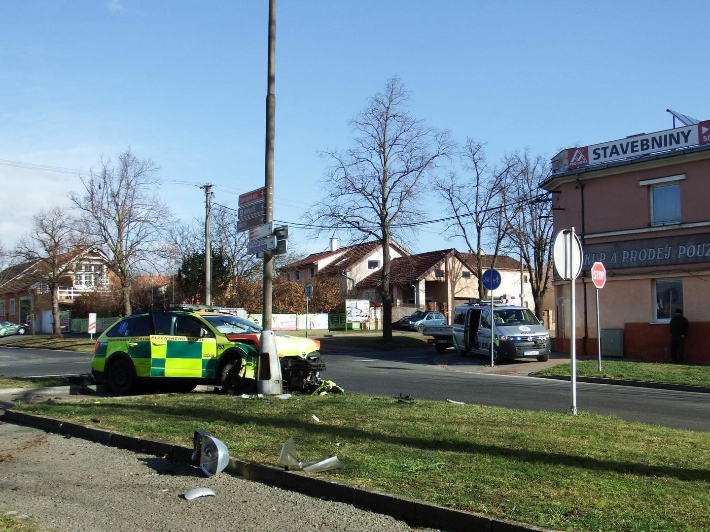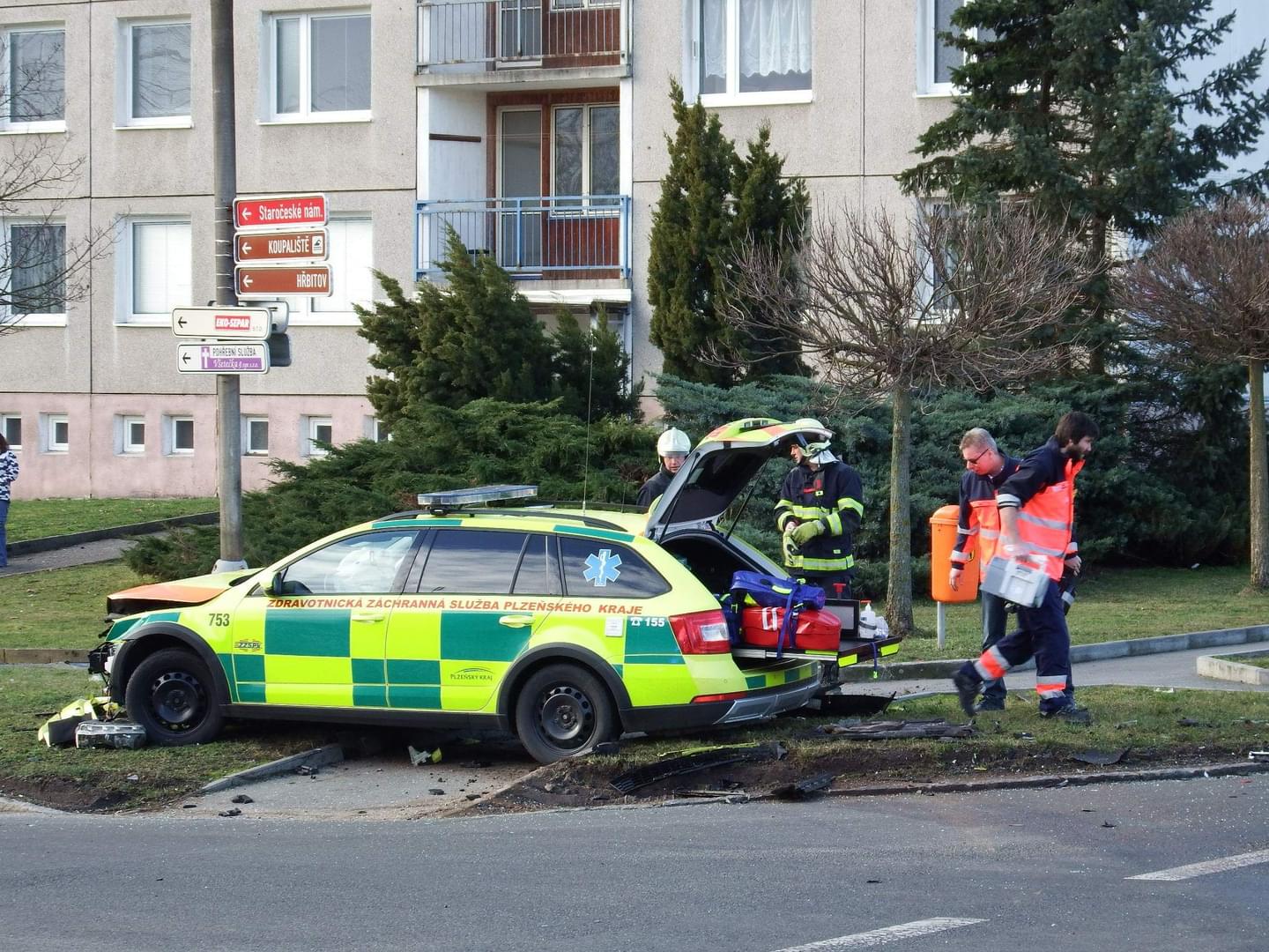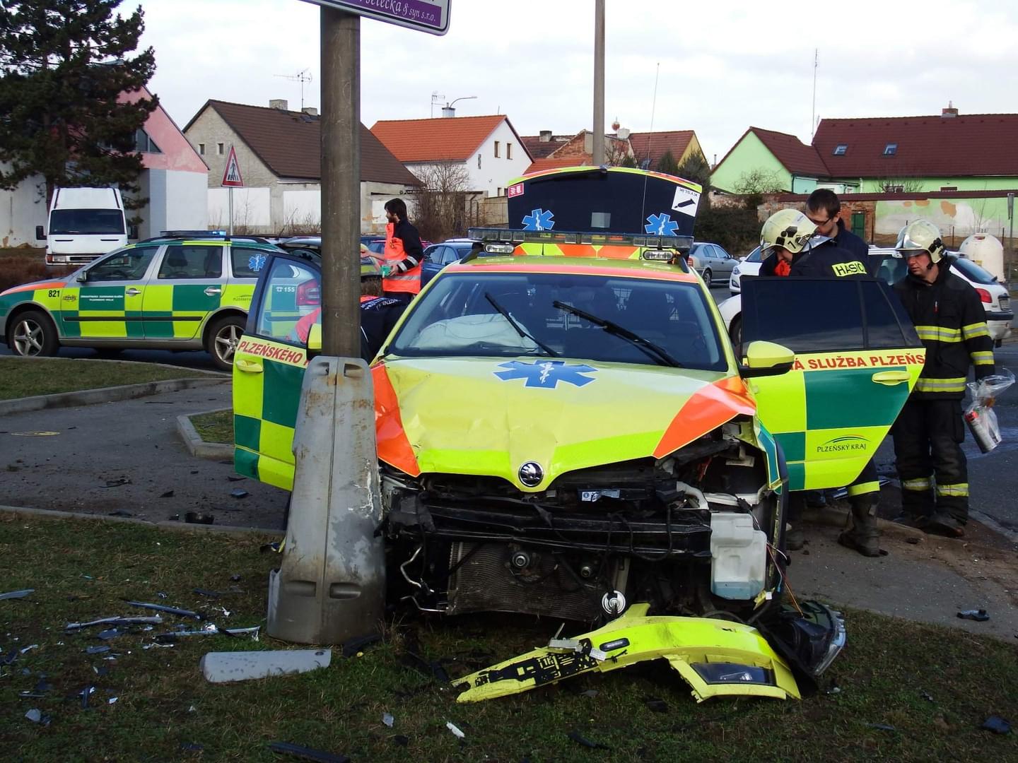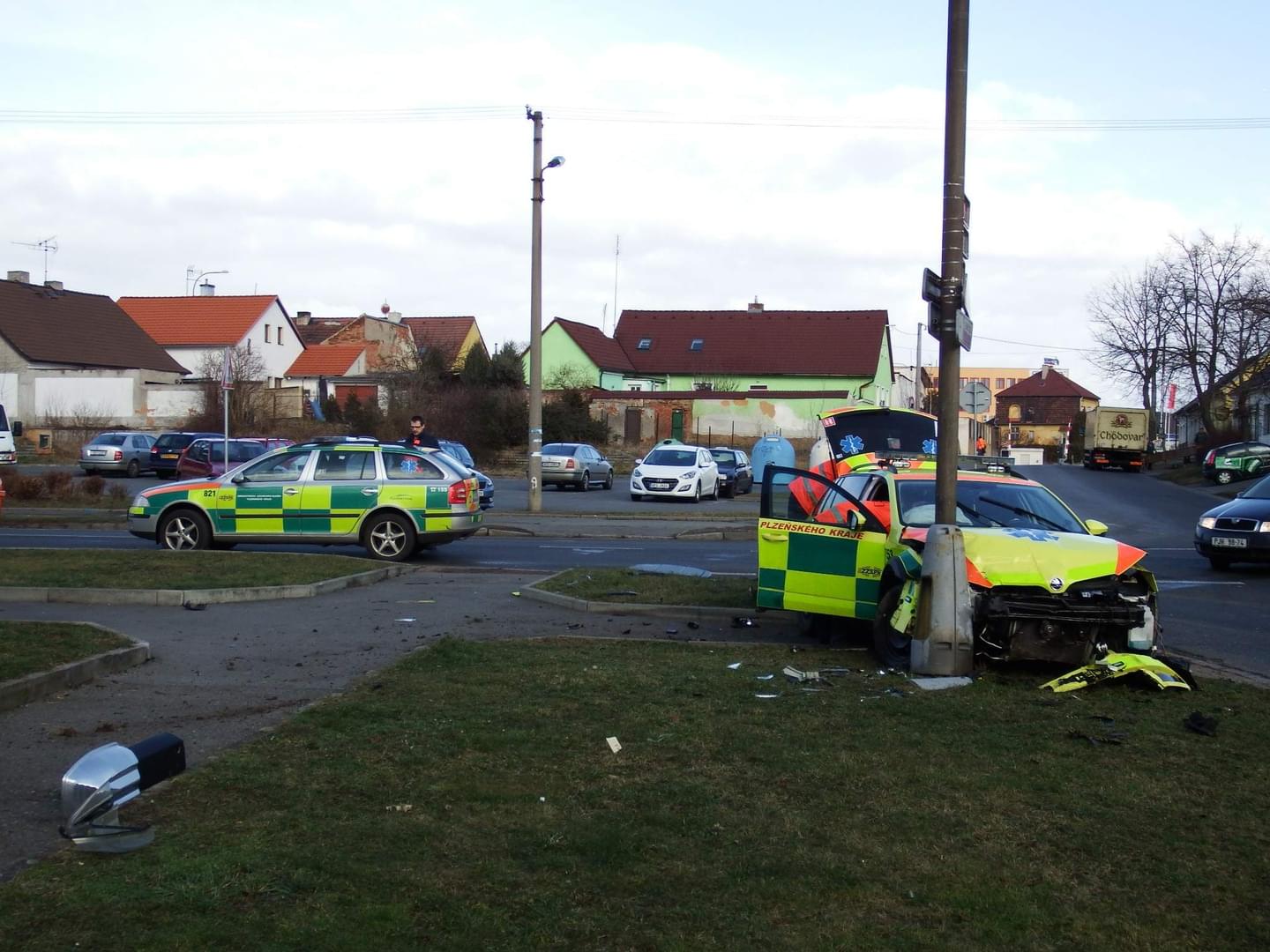 Následně došlo ke srážce obou vozů, kdy záchranářská Škoda jedoucí od Plzně narazila do lampy a Focus ujel ještě asi 10 metrů a přerazil strom.