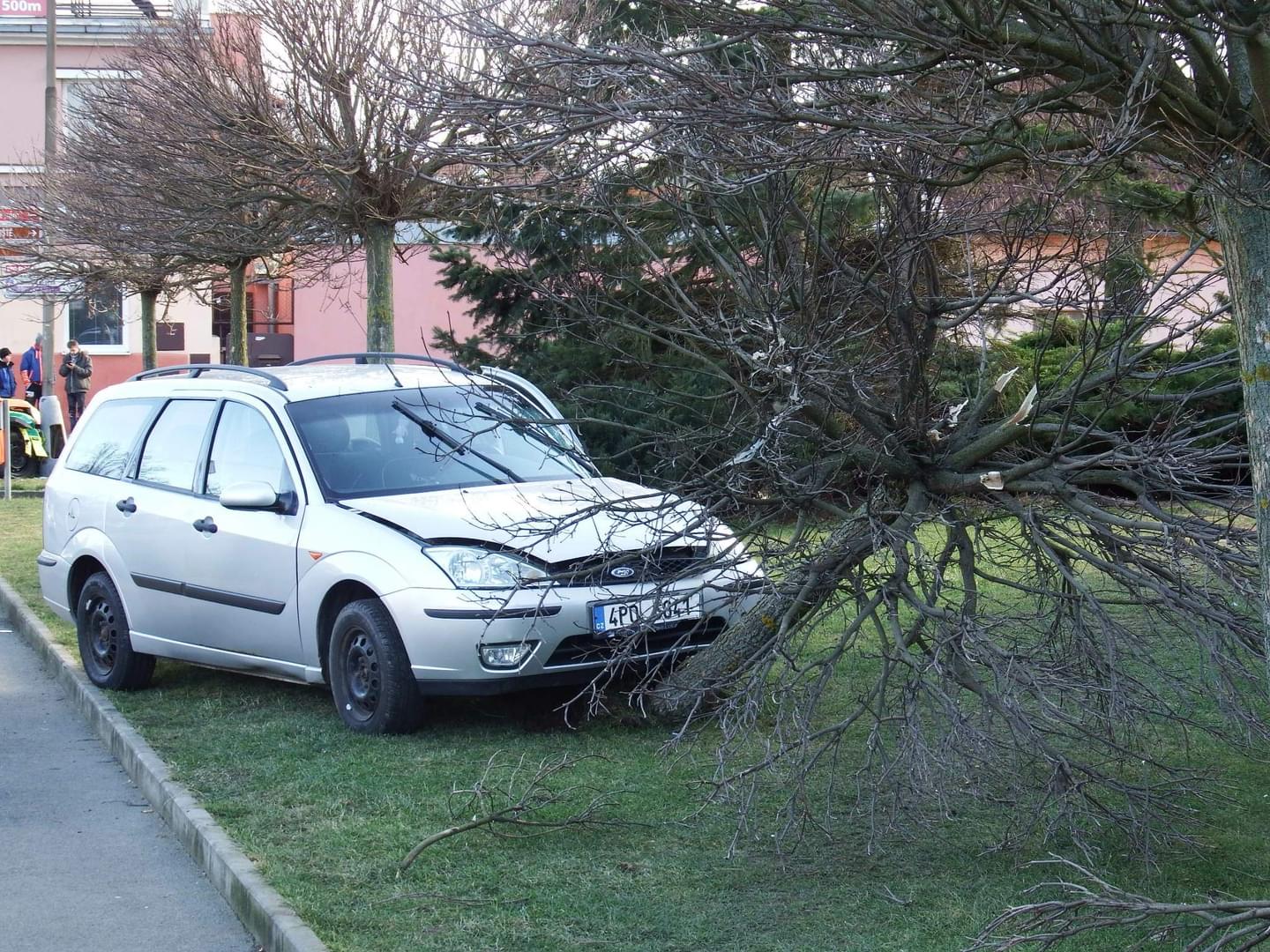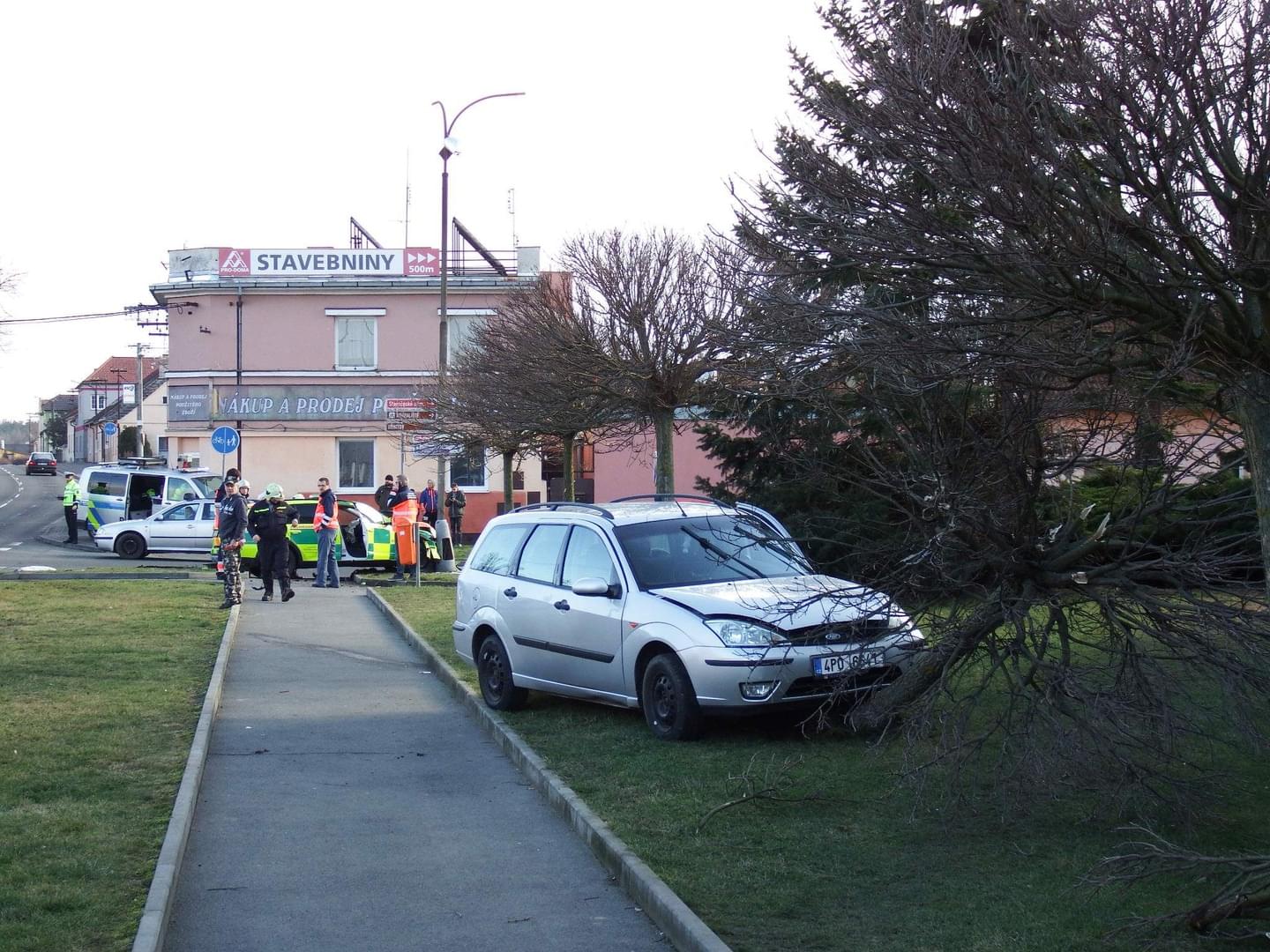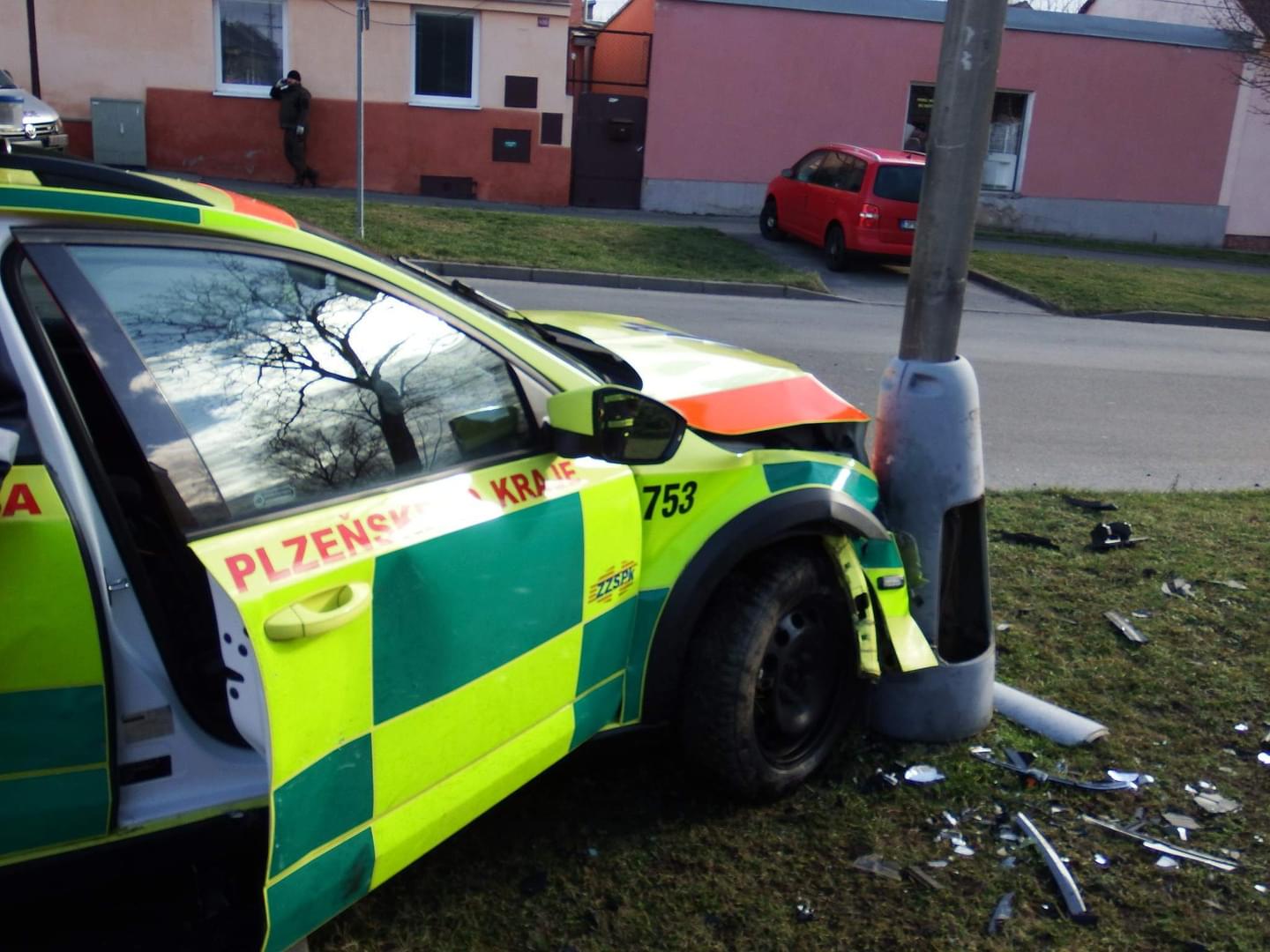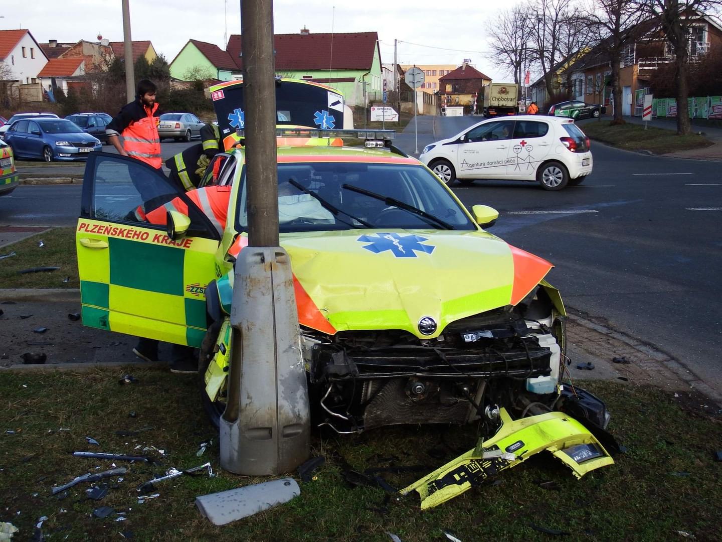 Následně došlo ke srážce obou vozů, kdy záchranářská Škoda jedoucí od Plzně narazila do lampy a Focus ujel ještě asi 10 metrů a přerazil strom.