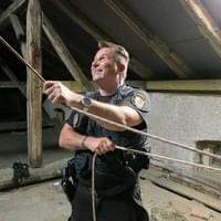 To se však nestalo, a tak se po chvilce vymotávání strážník Petr Kokoška i s poštolkou ocitl zpět na půdě u kolegy Zdeňka Petrovice.
