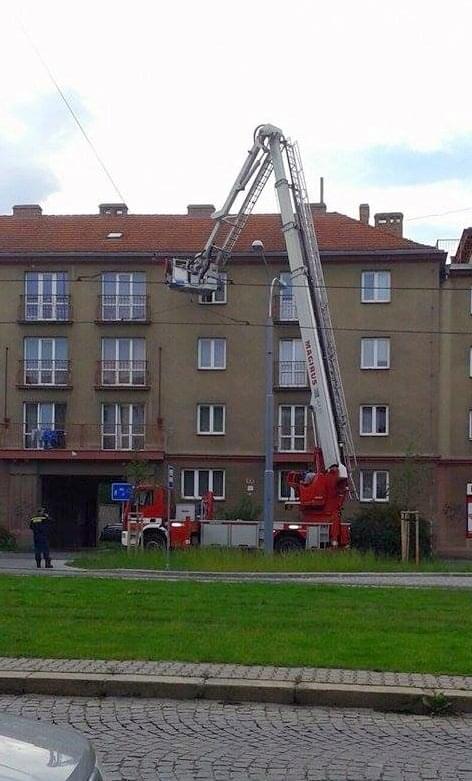 Dnes na Slovanech rozhodli tak, že přivolali hasiče, kteří za použití výškové techniky vystoupali do bytu, otevřeným oknem vnikli dovnitř a paní pomohli. Paní byla nalezena v pořádku, nakonec nepotřebovala ani lékaře, takže ji hasiči pouze zvedli, pomohli se posadit a přivolali příbuzné, kteří si babičku převzali.