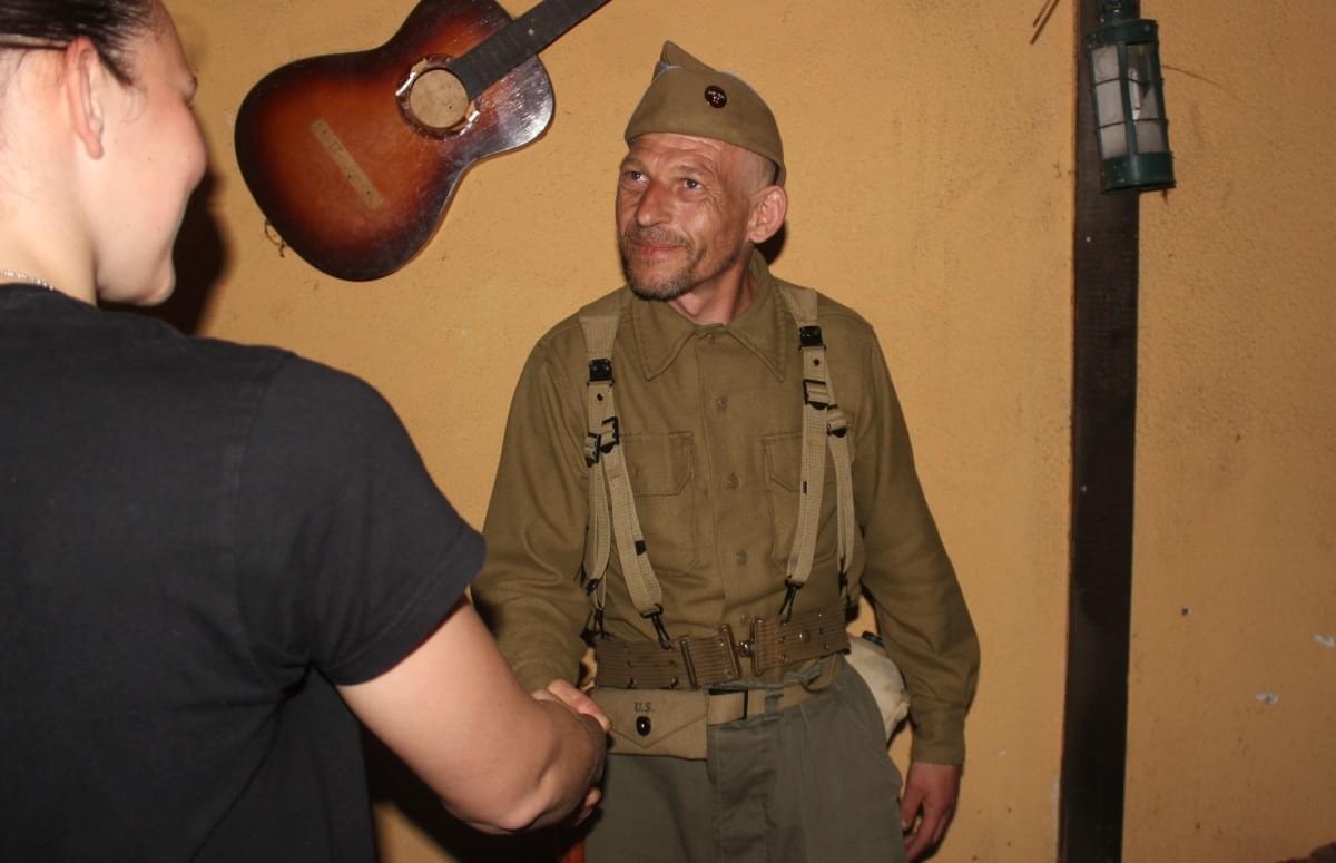 Jednou se ale stal velký průser. Měl hlídat jeepy, aby na ně nikdo nelezl a když se nás ptal, co má případně dělat, někdo mu z legrace řekl, že má dotyčného praštit dřevěným obuškem vojenské policie, který jsme mu půjčili.
