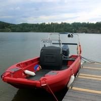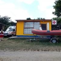 Záchranáře můžete najít na jejich základně v kempu Keramika, kde se u břehu pohupuje i jejich motorový člun s modrými