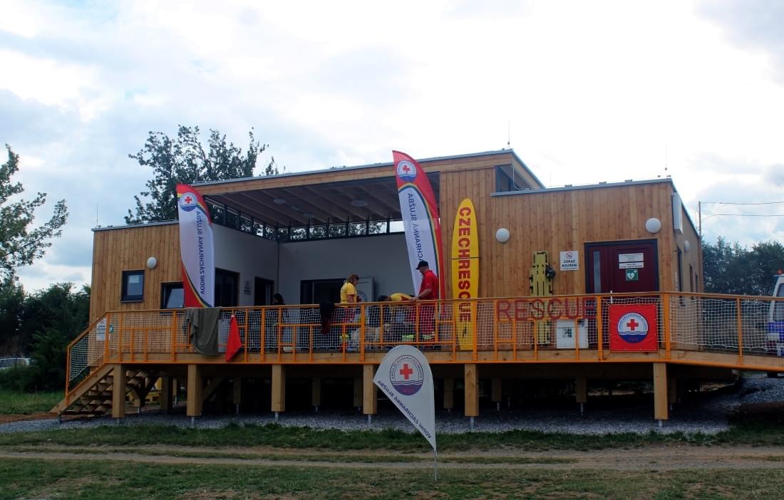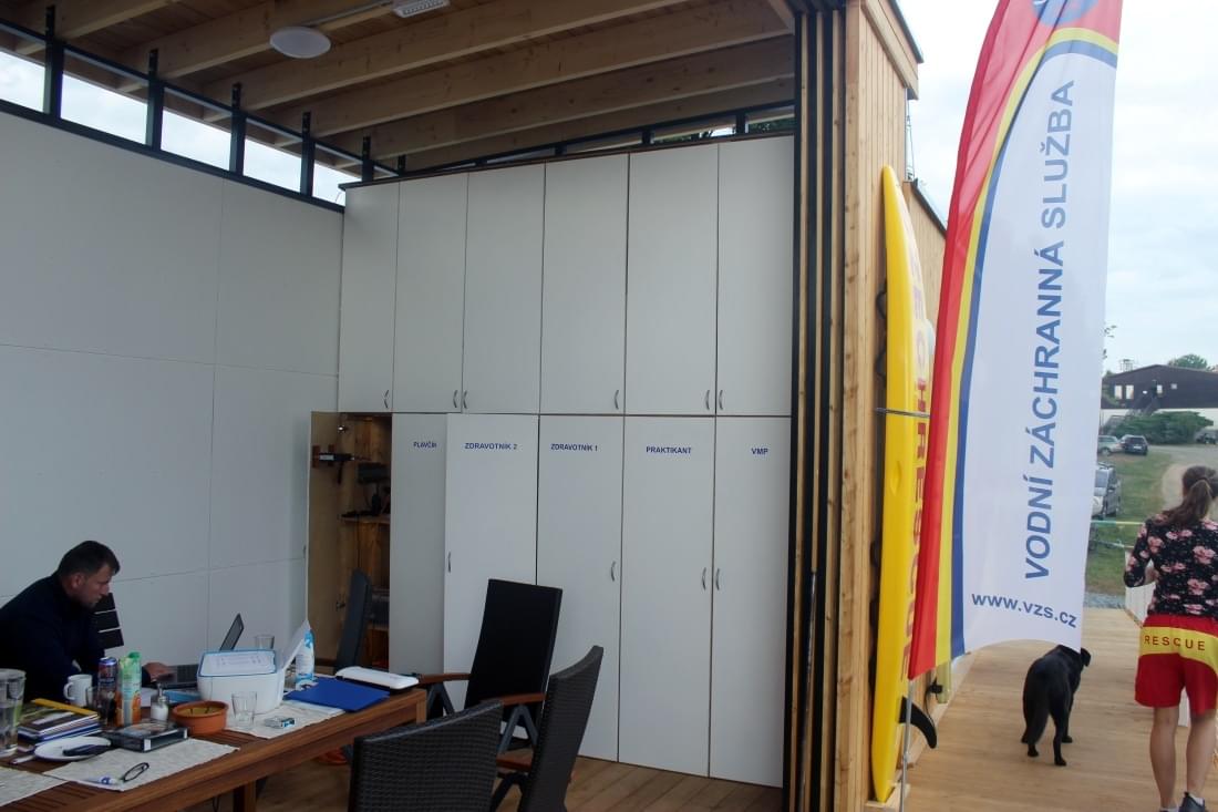 Letos se ale záchranáři konečně dočkali i adekvátního zázemí a to modulového systému tří buněk s krytou terasou, kde je zázemí pro