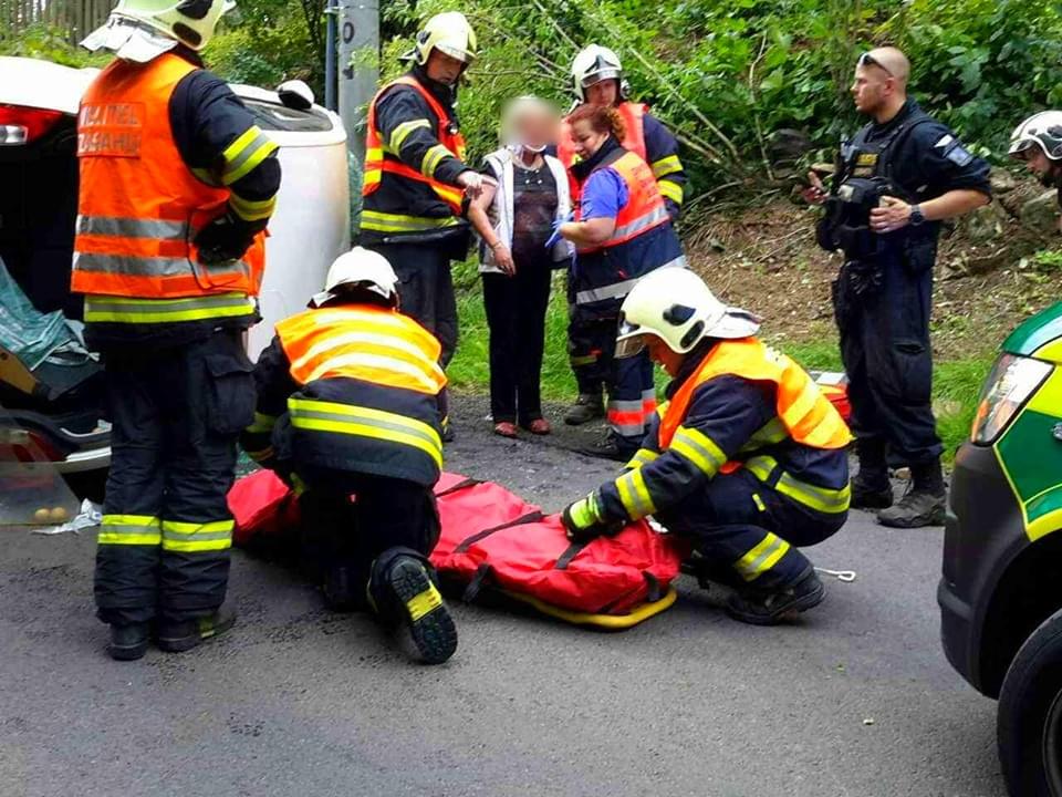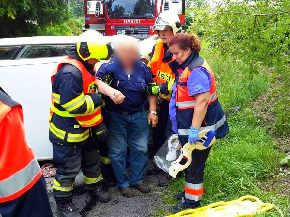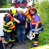 Uvnitř vozu zůstal uvězněný muž se ženou, kteří se bez pomoci nedokázali dostat ven z vraku. Hasiči ze stanice Mariánské Lázně a dobrovolní hasiči z Teplé starší pár z auta vyprostili a předali záchranné službě.