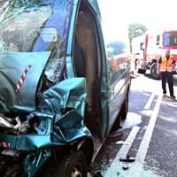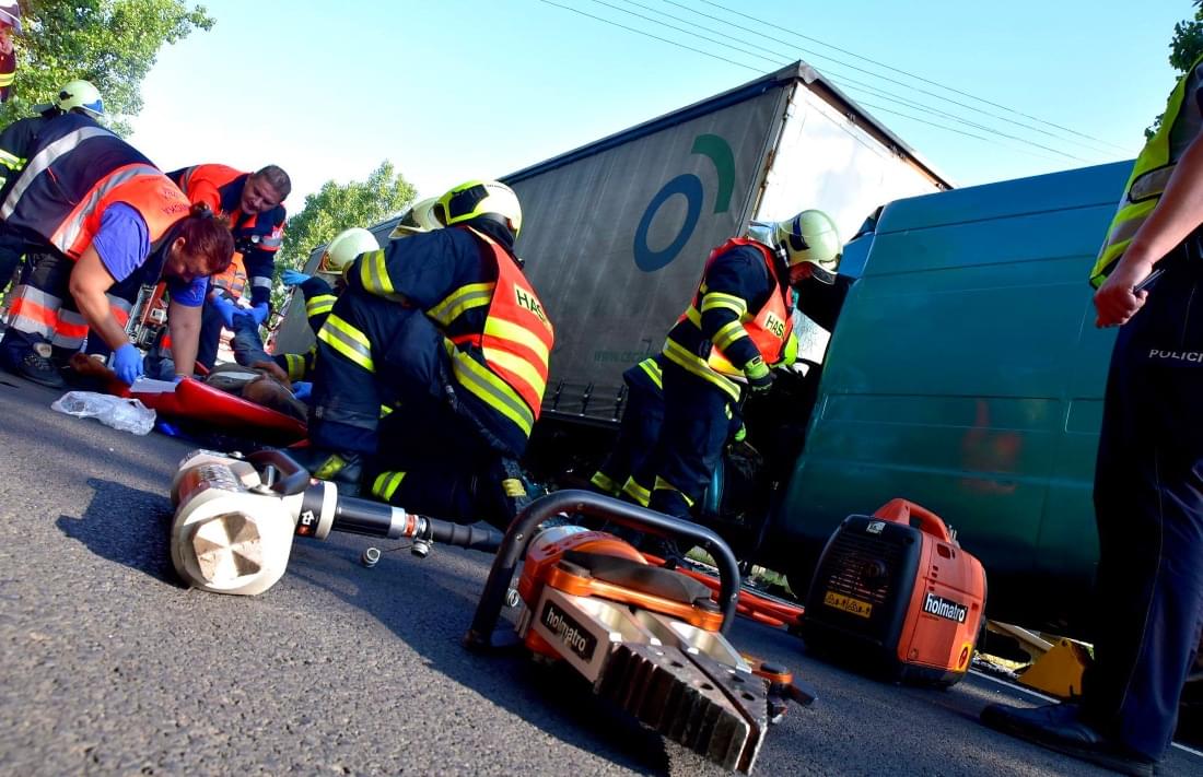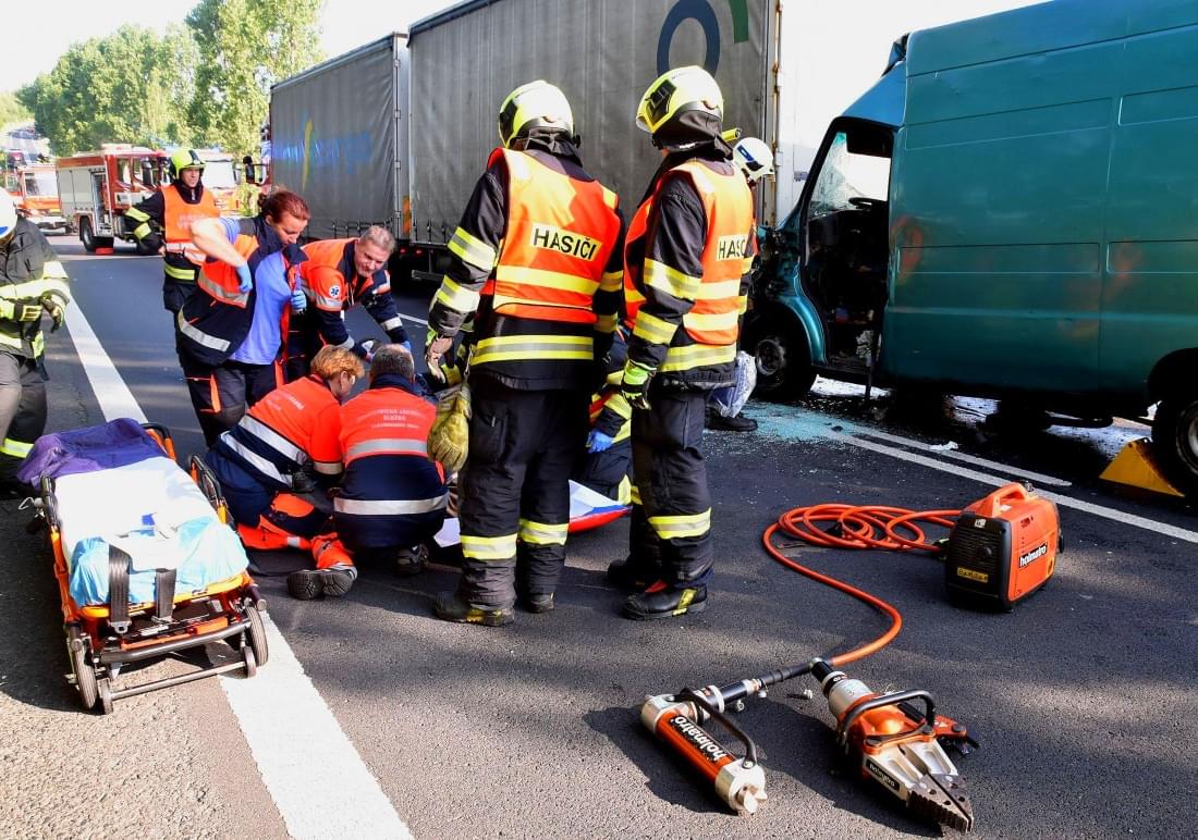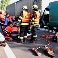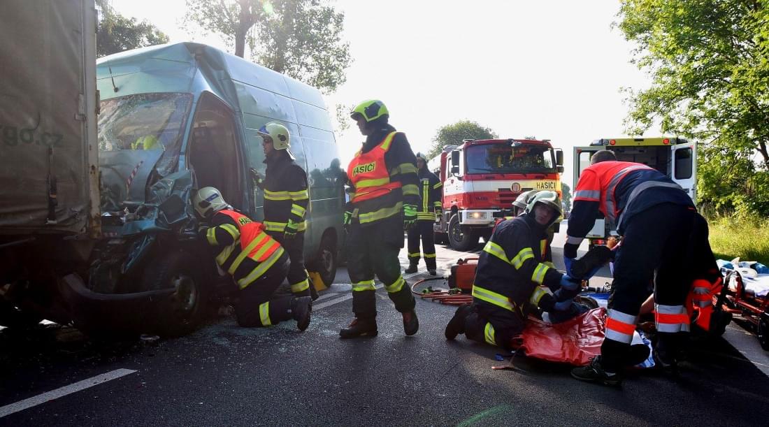 V kabině dodávky zůstal zaklíněný řidič, přivolaní hasiči museli muže vyprostit s použitím hydraulických nástrojů.
