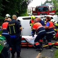 O zhruba dvě hodiny později, tedy kolem poledne, havarovalo osobní auto na silnici u Ovesných Kladrub u Mariánských Lázní a po havárii skončilo na boku.