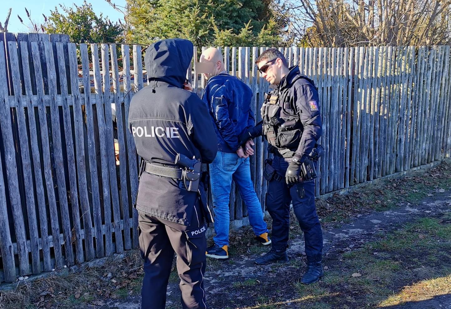 Policisté trojici, dva muže a ženu, pronásledovali, jednoho z mužů se jim podařilo dohnat a ženu objevili, když se schovávala v křoví.