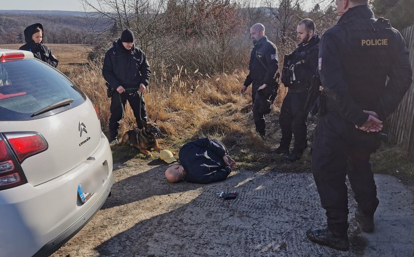 Foto: z místa (pozn.red. vozidlo Citroen, u kterého byli pachatelé zajištěni, nemá s případem nic společného)