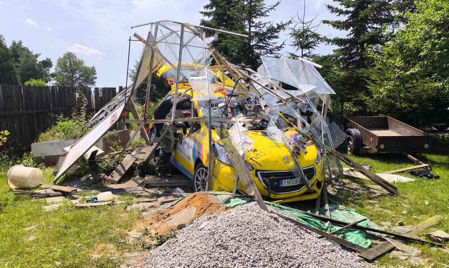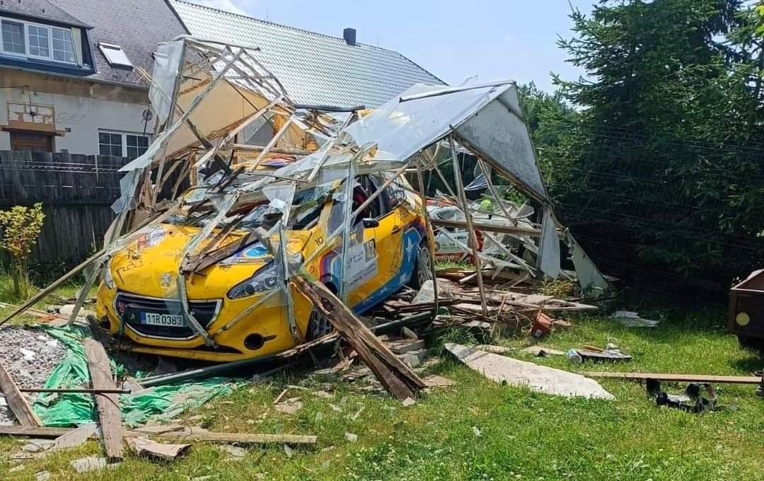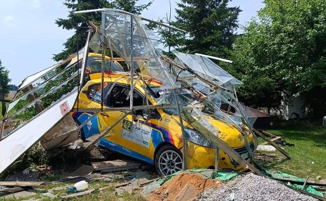 Podle pořadatelů zde řidič vozu Peugeot 208 R2 RC4 II se startovním číslem 42 zřejmě špatně odhadl zatáčku, nedobrzdil a po vyjetí ze silnice projel plotem na pozemek domu, kde s vozem skončil přímo uprostřed skleníku.