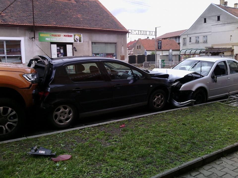 Jen souhrou šťastných okolností nedošlo včera po poledni k tragédii v Líních u Plzně, když vozidlo Volkswagen Bora projelo ulicí Plzeňská v protisměru, vyjelo ze silnice a narazilo do zaparkovaného Peugeotu 307 tak silně, že ho odmrštilo na několik metrů vzdálený zaparkovaný Ford Ranger.