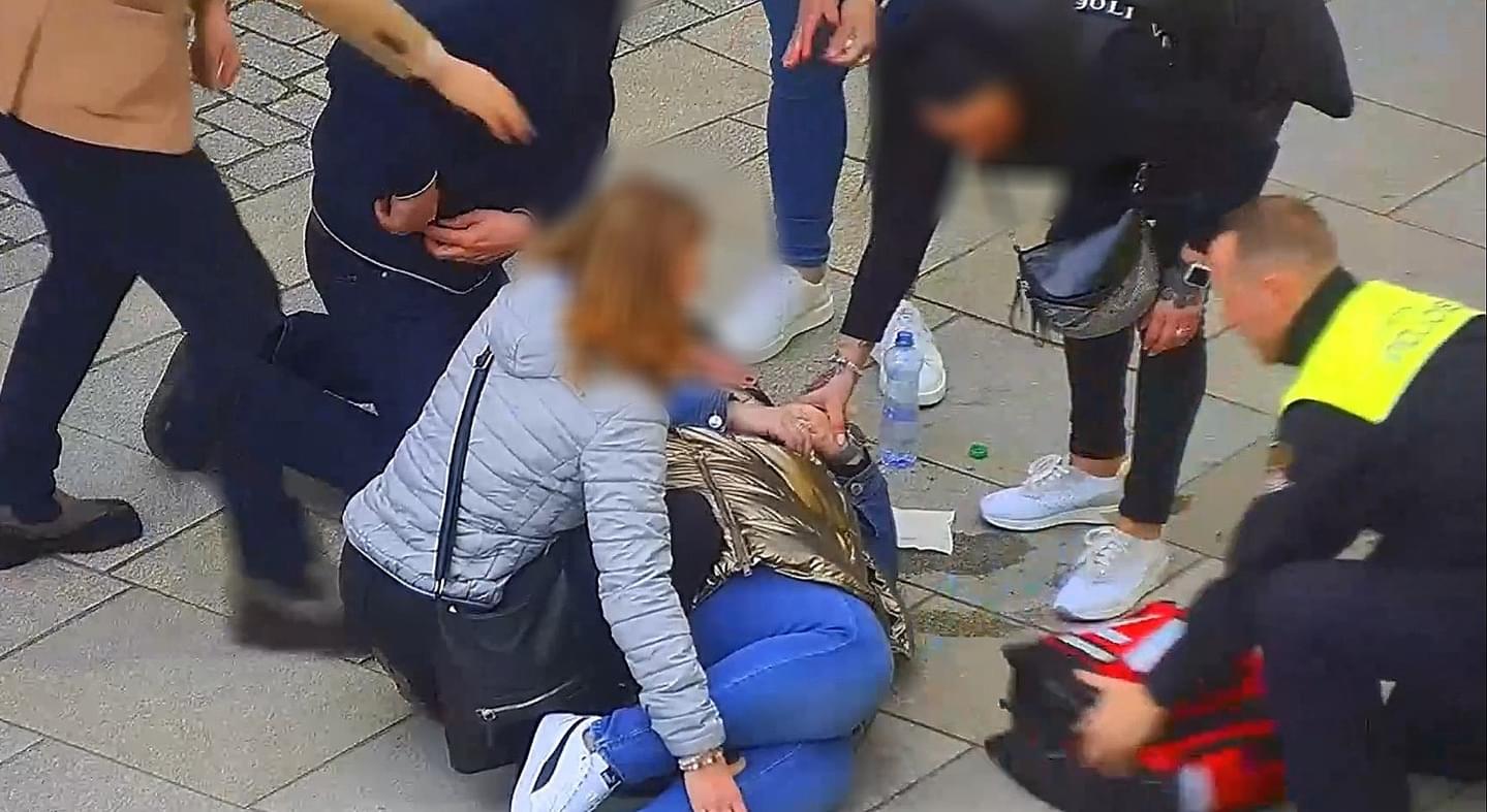 "Při příjezdu hlídky na místo ležela již žena ve stabilizované poloze a byla při vědomí. Na žádost přítomné zdravotní sestry použili strážníci ambuvak, jehož prostřednictvím se provádí umělé dýchání, a kontrolovali zdravotní stav do příjezdu přivolané posádky záchranné služby, která si ženu převzala do odborné péče," popsali strážníci.