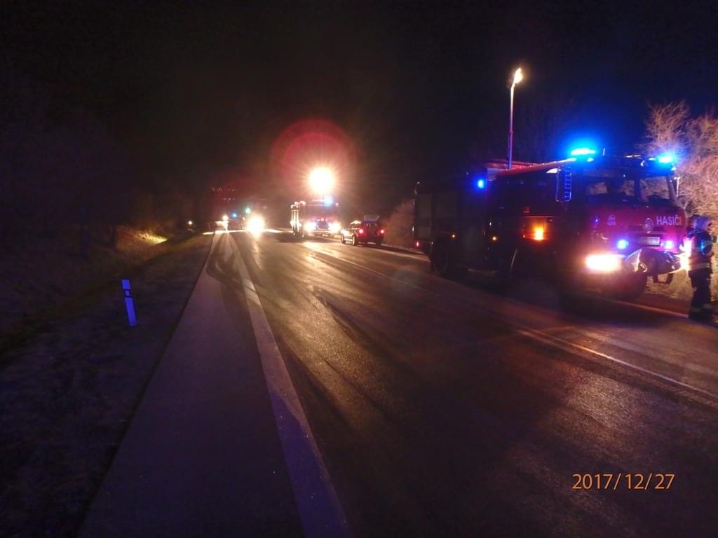 "Řidička narazila do stromu nedaleko odbočky na Mohelnici a zůstala uvnitř zaklíněná. Aby se hasiči ke zraněné ženě dostali, museli porazit strom a na samotné vyproštění použít hydraulické zařízení. Současně připravili přistávací plochu pro vrtulník. Silnice v místě byla pokryta ledem, velitel zásahu si prostřednictvím KOPIS vyžádal SÚS s posypovým vozem. Dopravní nehoda uzavřela provoz, v šest hodin ráno se podařilo zprovoznit jeden jízdní pruh," popsala zásah tisková mluvčí hasičů.