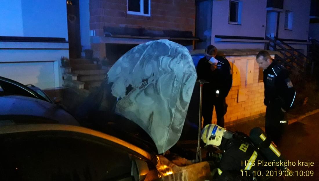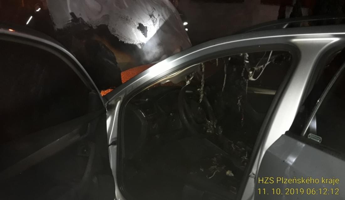 Na místo vyjeli hasiči, než však stačili požár uhasit, zasáhl motorovou část vozu a interiér.