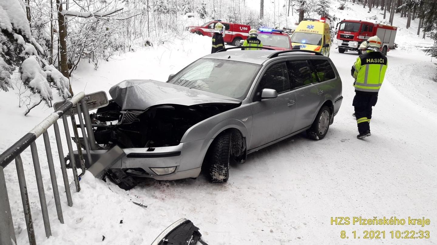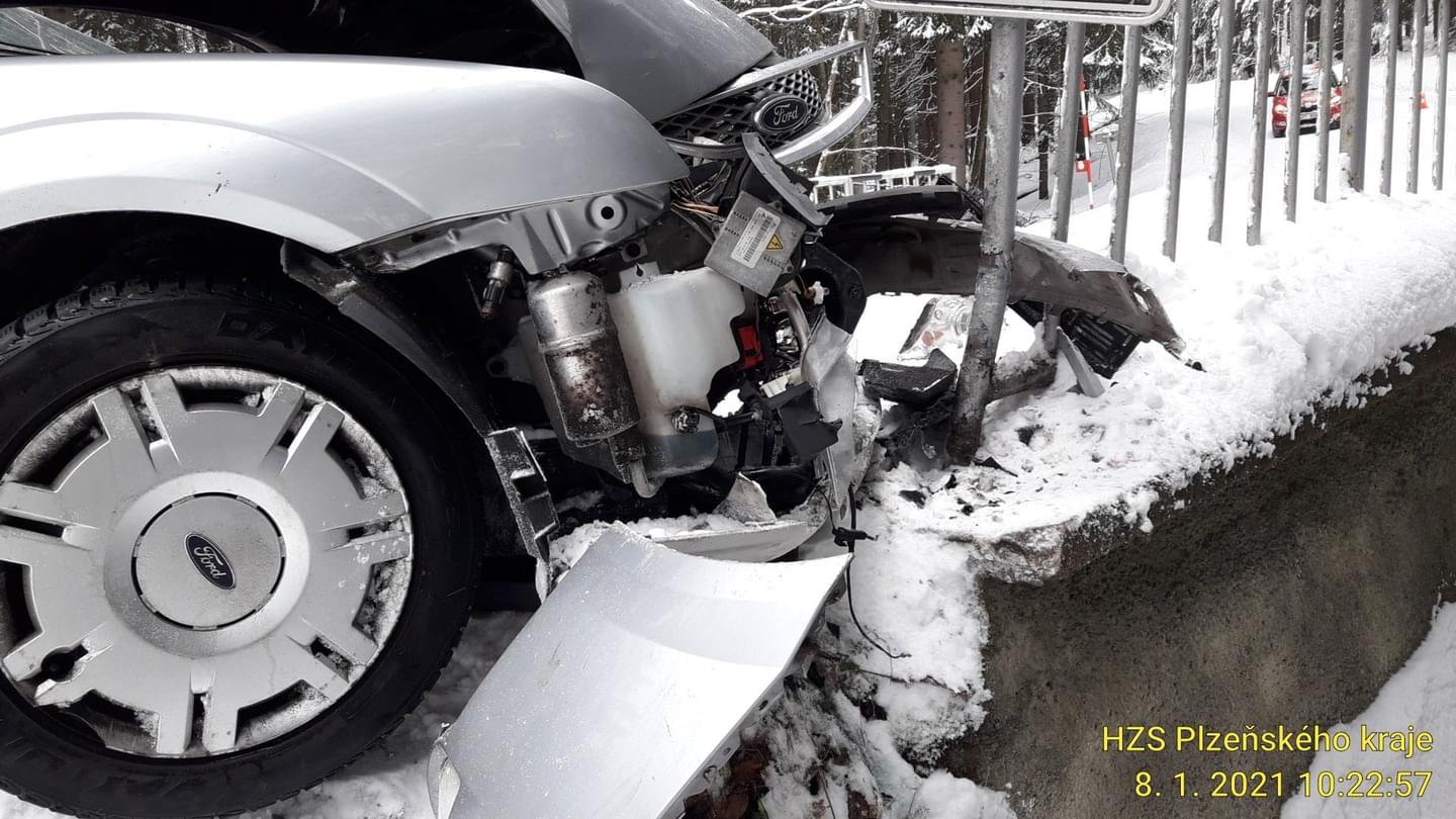 Dnes před desátou hodinou dopoledne došlo na silnici mezi obcemi Rejštejn a Svojše k havárii osobního vozu do mostku.