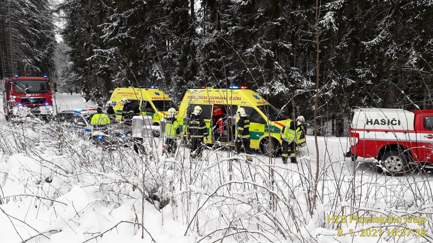 Při havárii utrpěl zranění řidič i dvě děti, které s ním cestovaly. Hasiči zajistili místo události a všem zraněným poskytli předlékařskou první pomoc. "Zdravotnická záchranná služba z místa DN transportovala pětačtyřicetiletého muže a dvě nezletilé osoby s lehkými zraněními do Klatovské nemocnice," uvedli záchranáři.