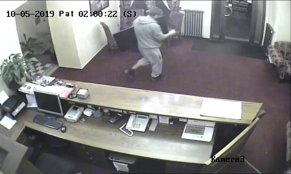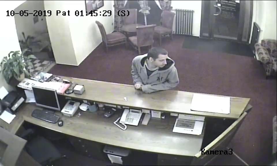 V noci ze čtvrtka na pátek 10. května před jednou hodinou ráno vstoupil zatím neznámý zloděj v teplákové soupravě do hotelu, využil nepřítomnosti personálu na recepci a z prostoru za ní sebral klíč od jednoho z pokojů.