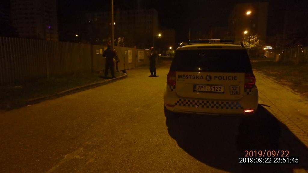 Jedna z hlídek si při kontrole objektu všimla několik osob, které přelézaly oplocení sběrného dvora. Strážníci zákonným způsobem osoby vyzvali k zastavení, na což celá trojice zareagovala tak lehnutím si na zem.